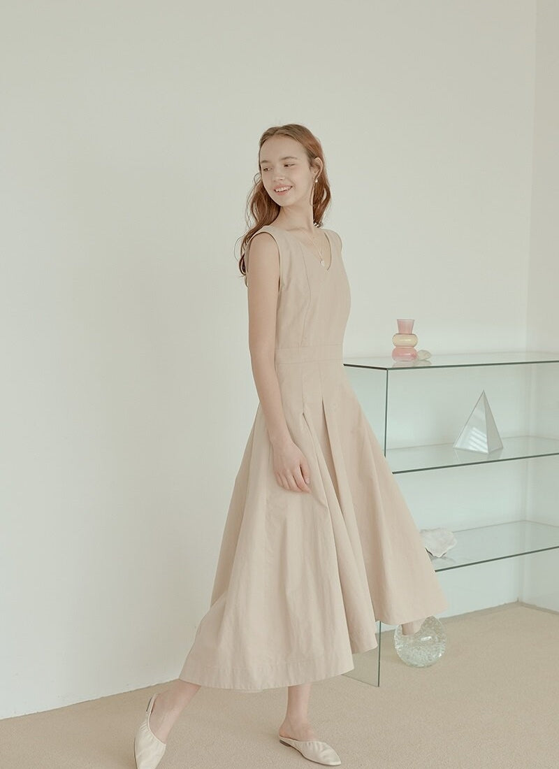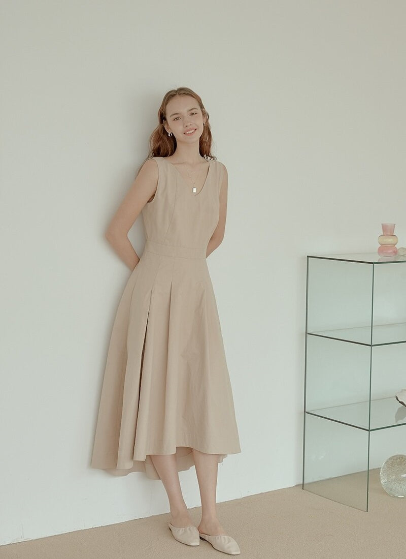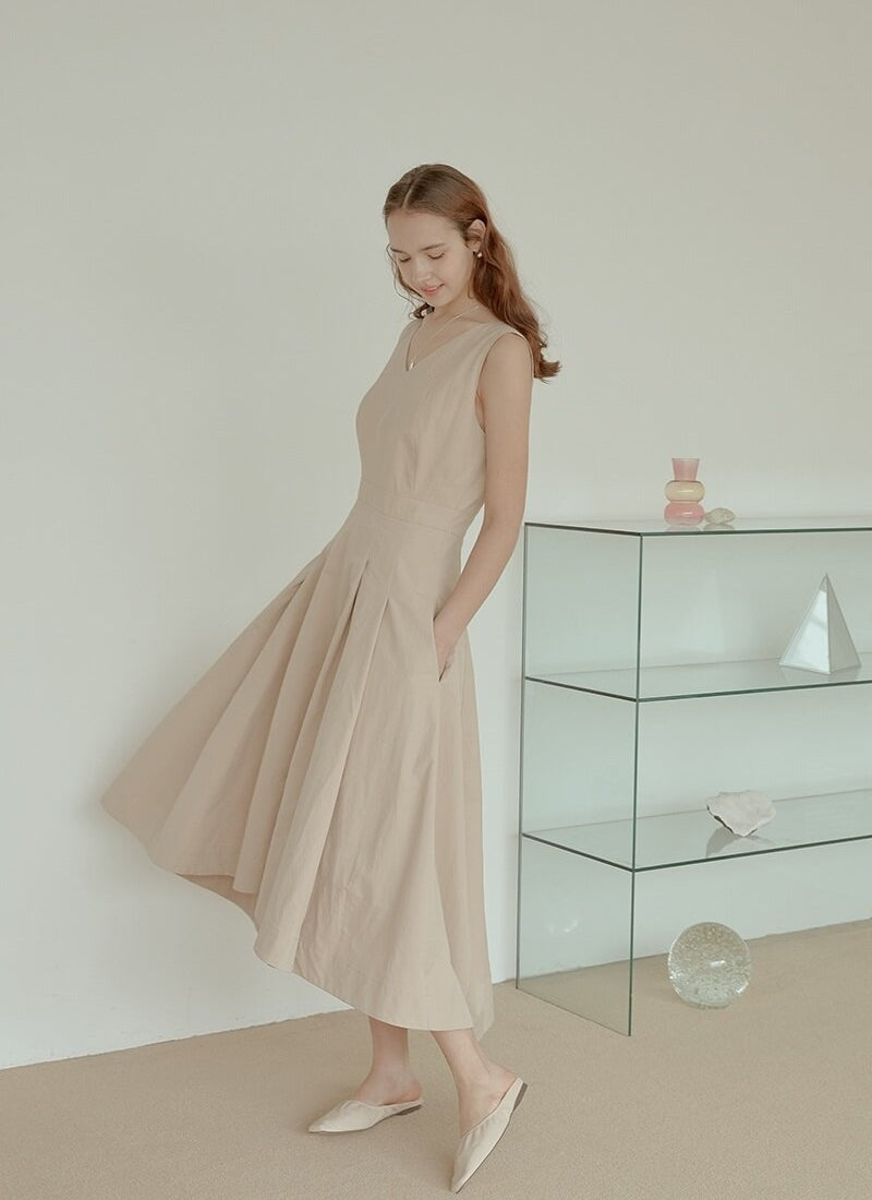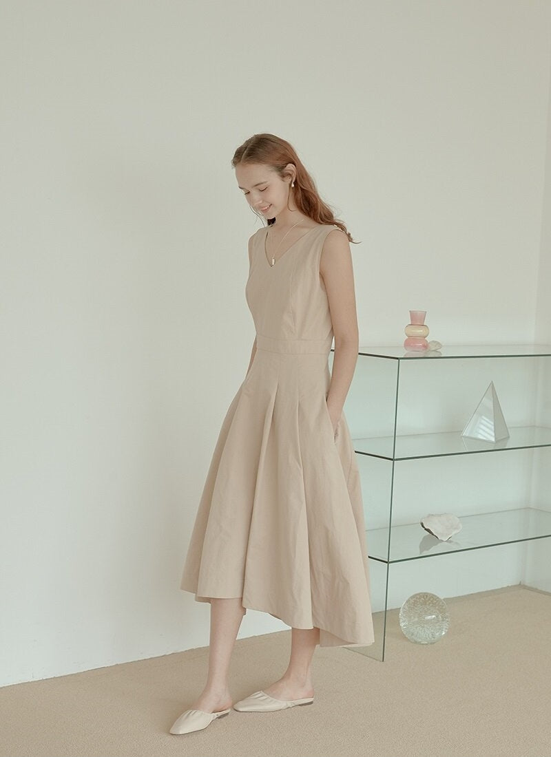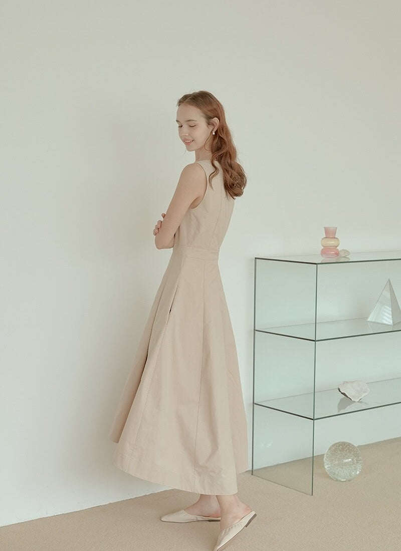 Understated and elegant, this sleeveless linen midi dress by Laura Ren is crafted for refined everyday sophistication. Made from breathable linen, it features a soft round neckline, tailored seams through the bodice, and a flared hemline that moves gracefully. Designed to enhance the natural shape, the fitted waist offers flattering definition while keeping comfort at the forefront. Functional side pockets add ease to the minimalist silhouette. Ideal for warm-weather dressing, this Laura Ren dress pairs seamlessly with flats or sandals for effortless versatility.