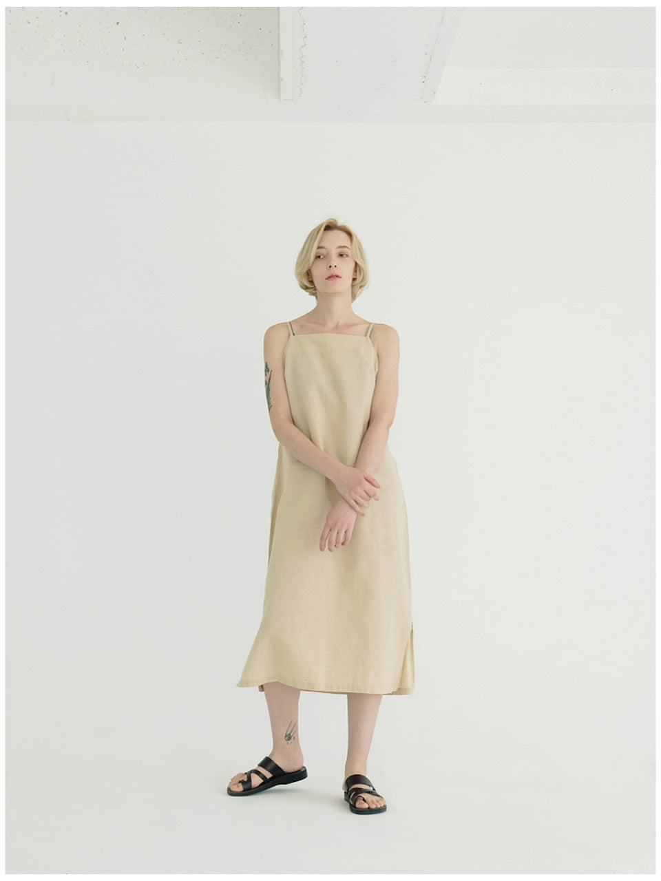 Effortlessly elegant and perfect for warm weather, this sleeveless linen midi dress by Laura Ren is designed for the modern woman who values both comfort and style. Made from breathable, natural linen, it features delicate shoulder straps, a graceful side slit, and a charming back tie detail that adds a feminine touch. The minimalist silhouette makes it versatile for both casual outings and refined events. Whether styled with sandals or heels, this linen dress offers timeless appeal and is an essential addition to any refined wardrobe. Laura Ren brings you elevated everyday luxury through natural textures and flawless craftsmanship.