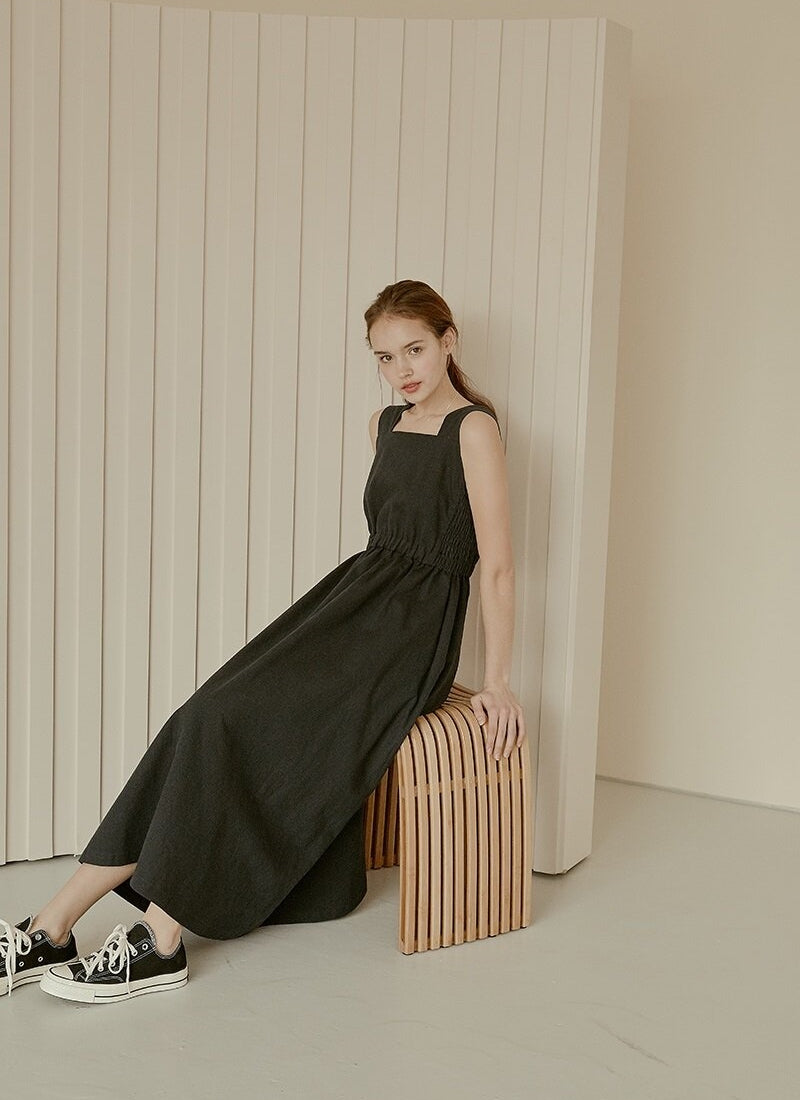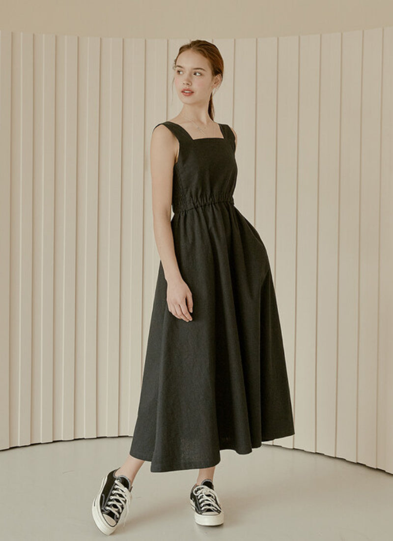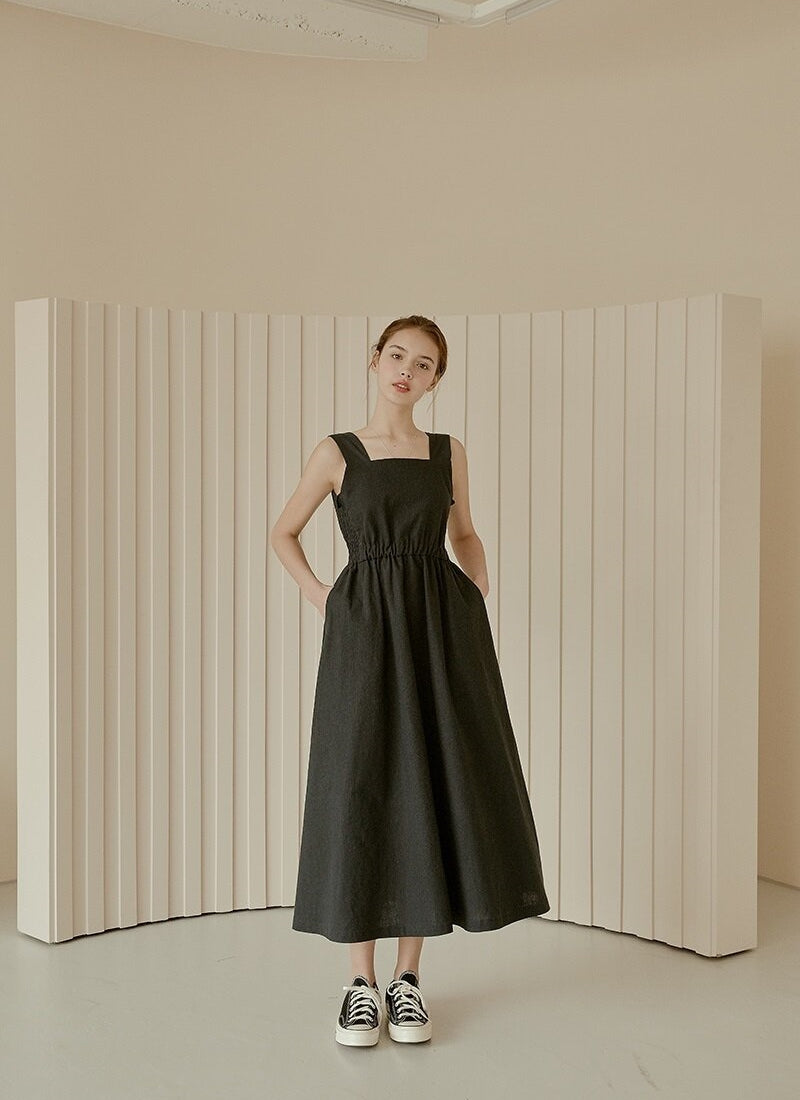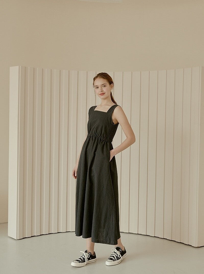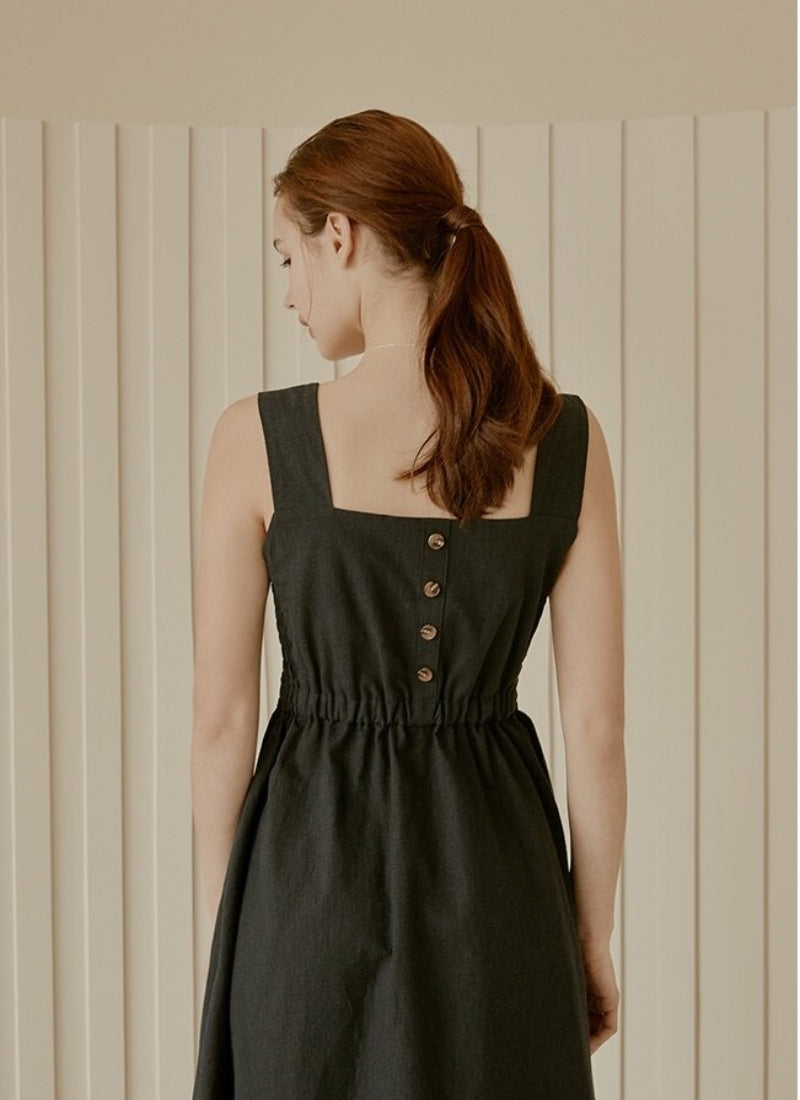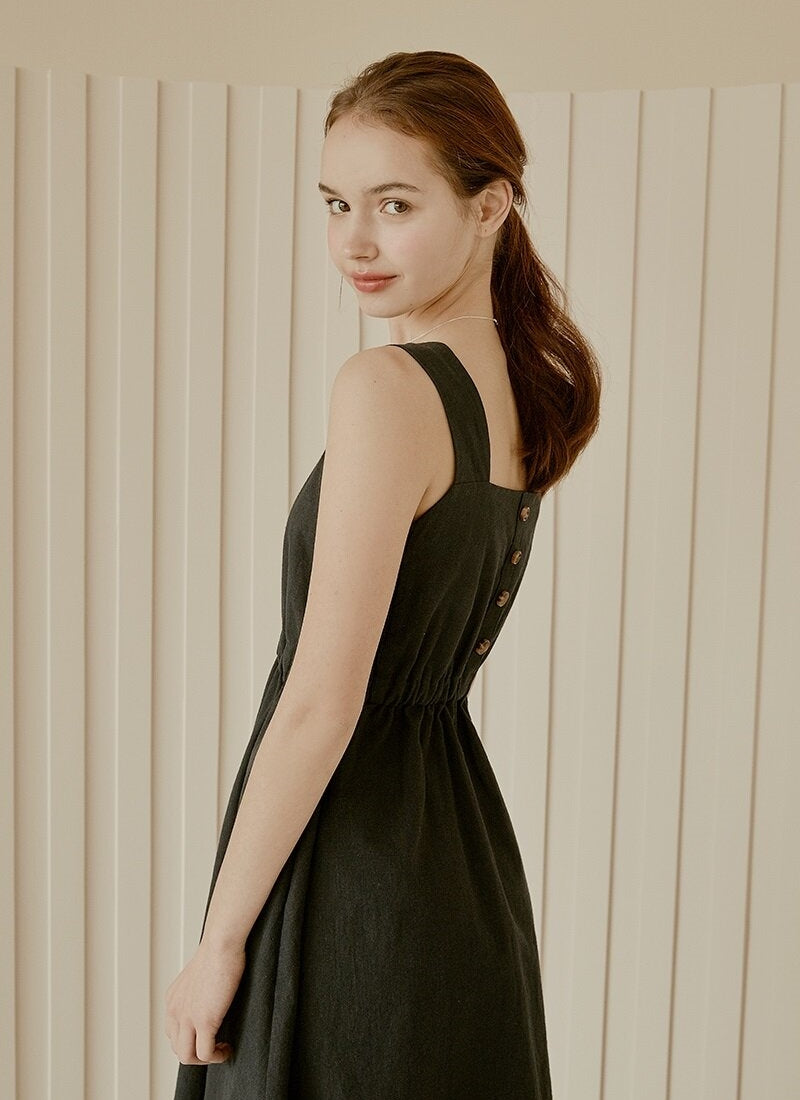 Sleek and refined, this sleeveless linen midi dress by Laura Ren is designed to deliver timeless comfort with minimalist charm. Made from premium, breathable linen fabric, it features a structured square neckline, a gently gathered elastic waist for a flattering silhouette, and unique button detailing down the back for subtle sophistication. The flowy A-line skirt offers graceful movement, making it ideal for both casual summer outings and elegant daytime events. A modern wardrobe staple, this Laura Ren dress effortlessly blends function with feminine polish.