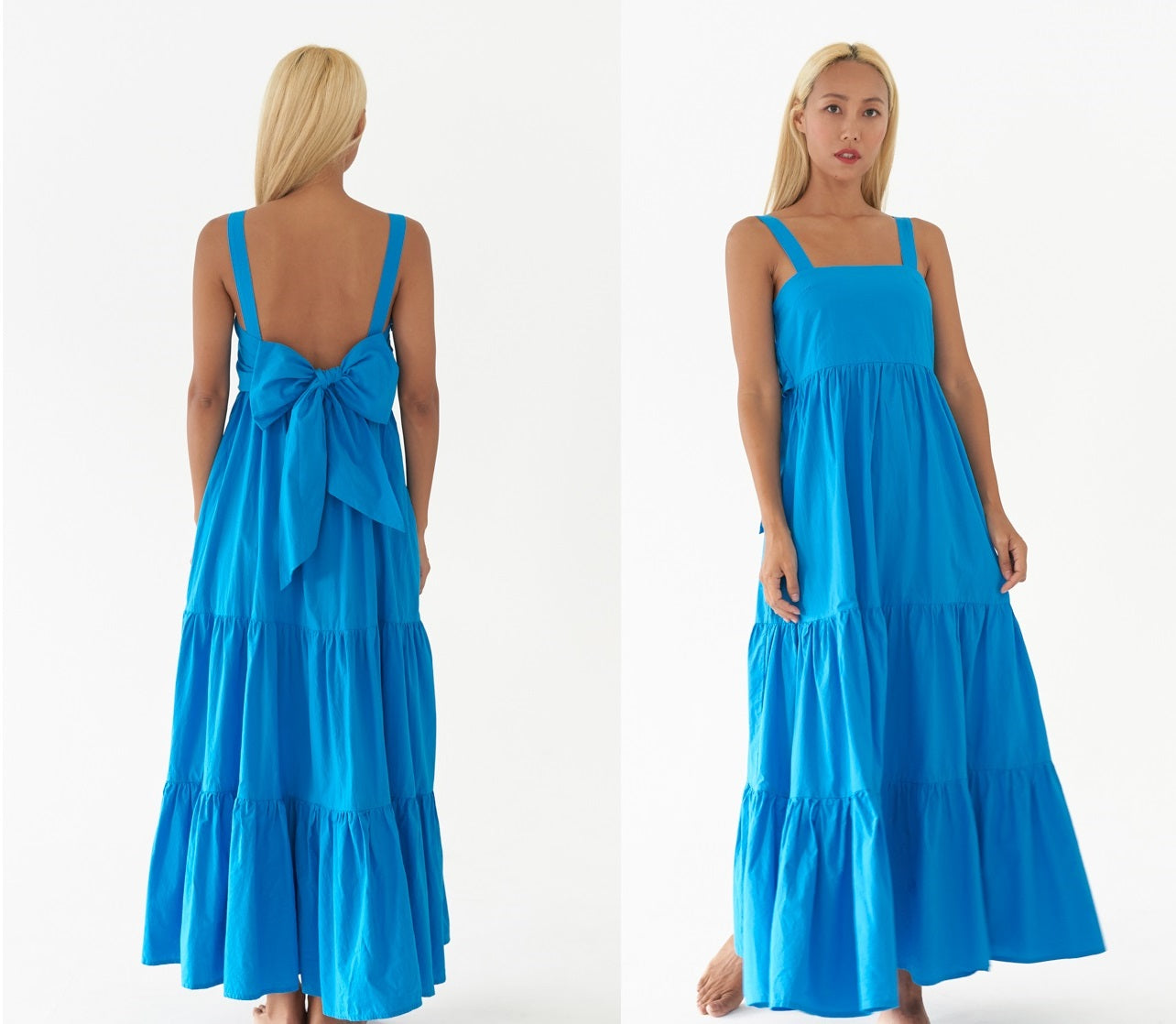 Laura Ren presents this breezy sleeveless maxi dress crafted from premium linen, designed for effortless elegance. The dress features a square neckline, tiered skirt, and a dramatic open back tied with an oversized bow — a standout silhouette perfect for beach days, vacations, or sunset soirées. Lightweight and breathable, it provides ultimate comfort without compromising style. The subtle texture of linen enhances its natural charm, while the flowy cut flatters all body types. Ideal for making a graceful statement in any warm-weather setting.