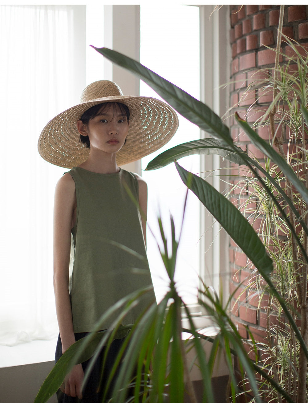 Crafted from lightweight and breathable linen, this sleeveless top by Laura Ren offers a timeless blend of comfort and refined simplicity. Designed with a relaxed fit and clean front, it features a charming tie closure at the back for added detail and elegance. The natural linen fabric ensures cool, breathable wear for warm weather days, while its versatile silhouette pairs effortlessly with wide-leg trousers, shorts, or skirts. Perfect for elevating a minimalist summer wardrobe, this piece is a go-to staple for chic, everyday sophistication.