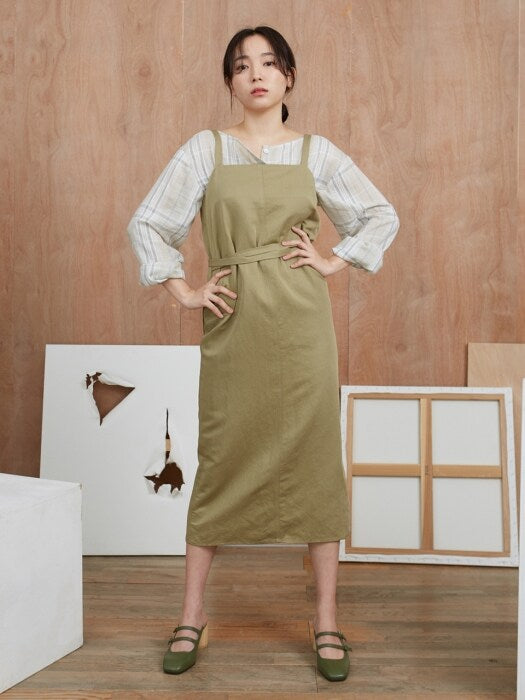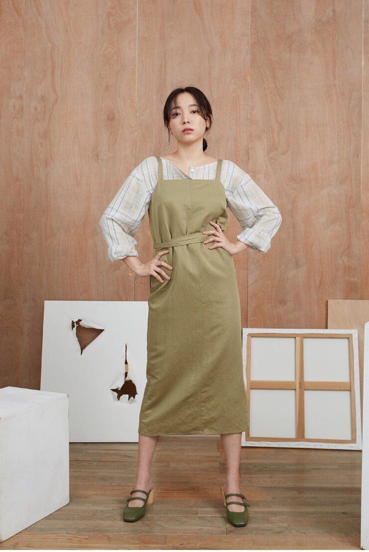 Laura Ren introduces this sleeveless linen midi dress tailored for a relaxed yet sculpted silhouette. Featuring a minimal round neckline and back slit for ease of movement, this piece blends clean structure with fluid comfort. The natural linen texture adds effortless elegance, while vertical seam detailing elongates the form. Slip into this refined staple for warm-weather days or layered spring styling.
