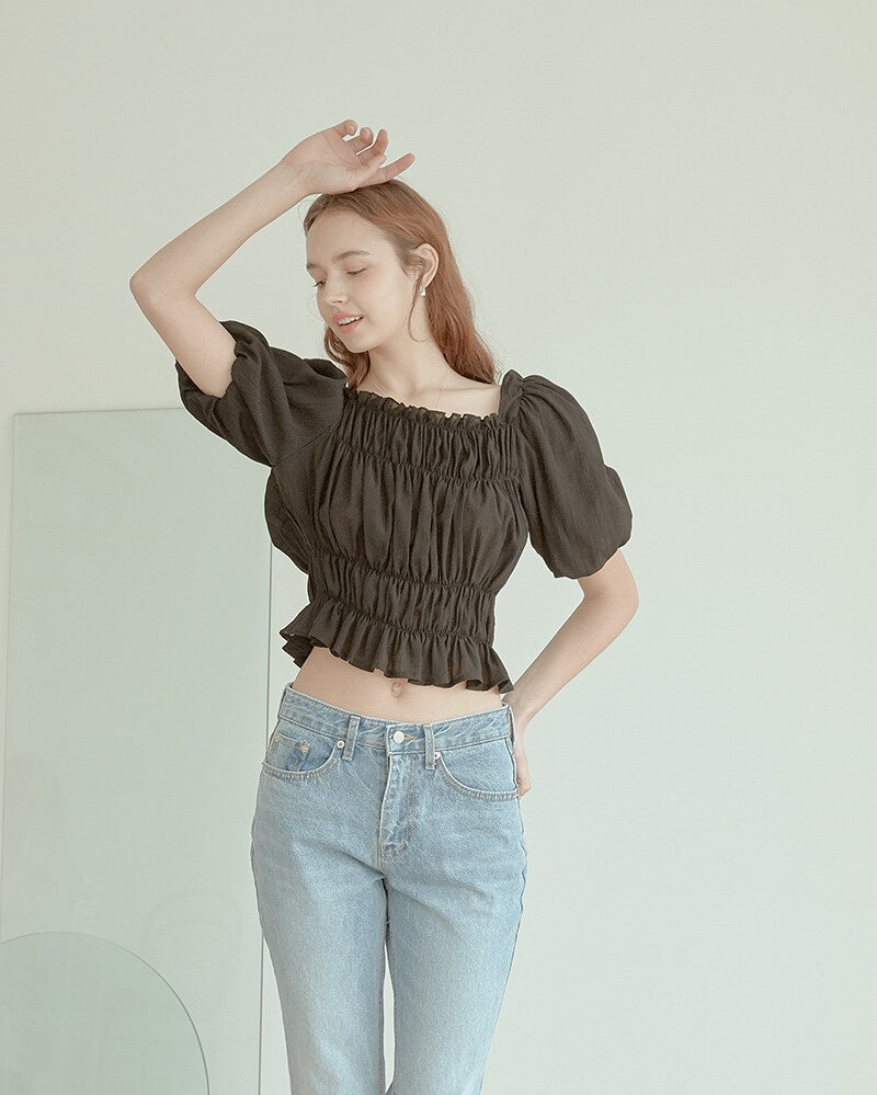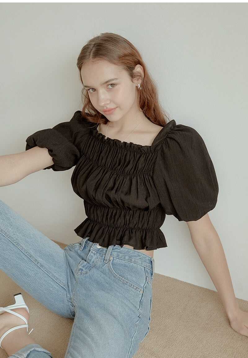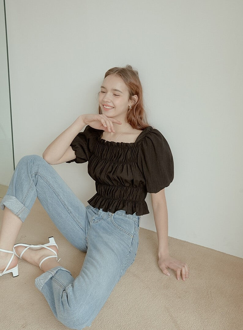 Elevate your everyday wardrobe with this smocked linen top from Laura Ren, crafted for effortless charm and breathable comfort. Designed with a flattering square neckline, voluminous puff sleeves, and a gathered silhouette, this piece strikes the perfect balance between romantic and relaxed. The ruffle hem and stretch shirring enhance its feminine appeal while allowing ease of movement. Ideal for pairing with denim or high-waisted skirts, this lightweight linen blouse brings texture and timeless style to your warm-weather looks. Add a soft yet structured touch to your collection with Laura Ren’s artisanal craftsmanship.