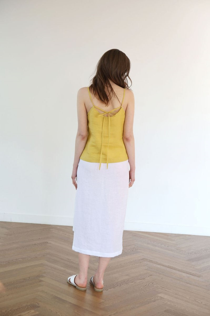 Laura Ren presents this elegant spaghetti strap linen top, crafted from breathable, eco-friendly linen fabric. Designed with a flattering square neckline and an adjustable tie-back closure, this top offers a clean and sophisticated silhouette for warm-weather styling. Its minimal seams and natural texture make it a versatile piece—perfect for pairing with skirts or high-waisted trousers. Lightweight and soft against the skin, it's a timeless summer staple. Experience elevated comfort and chic everyday wear with this refined linen piece.