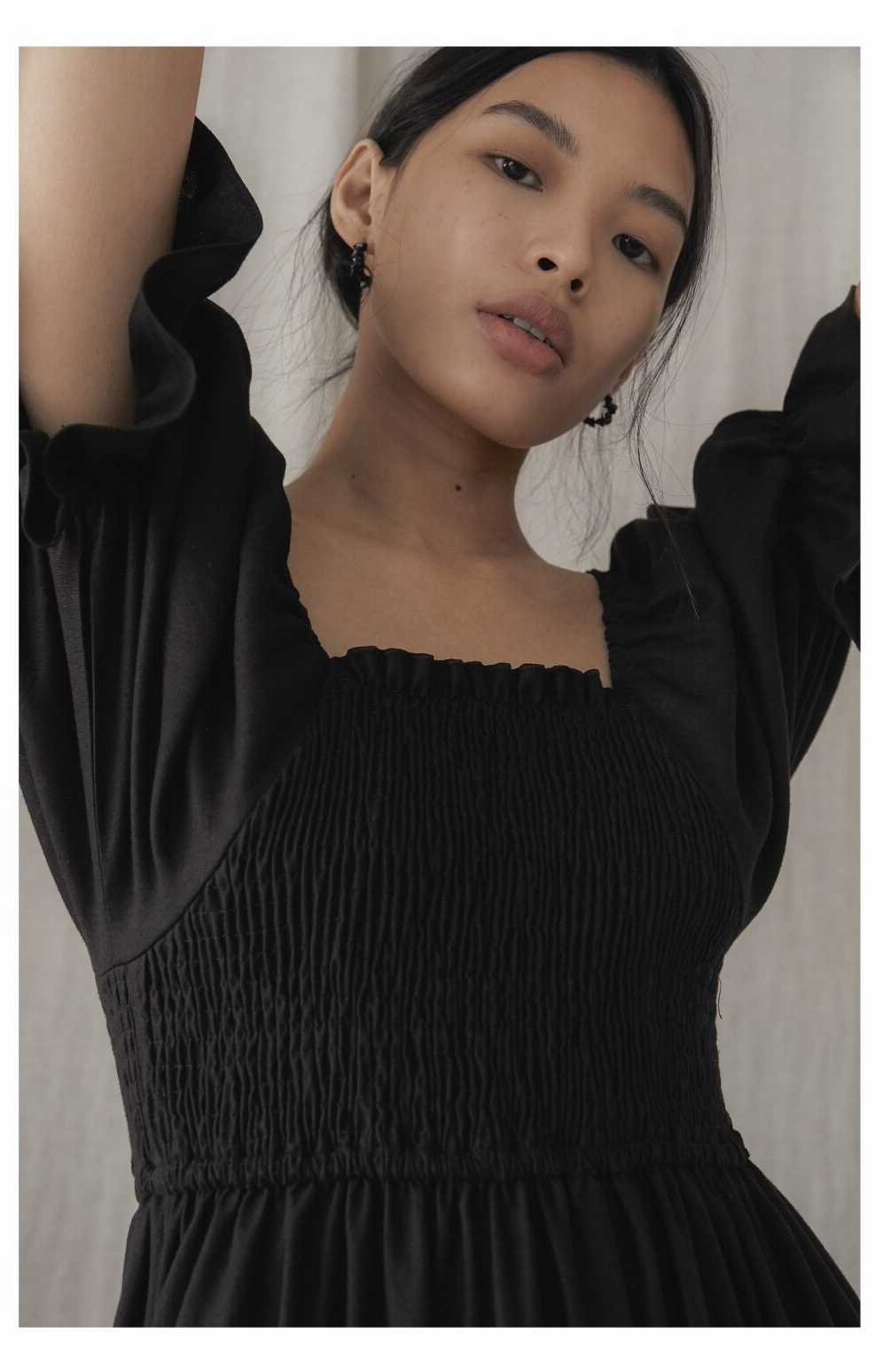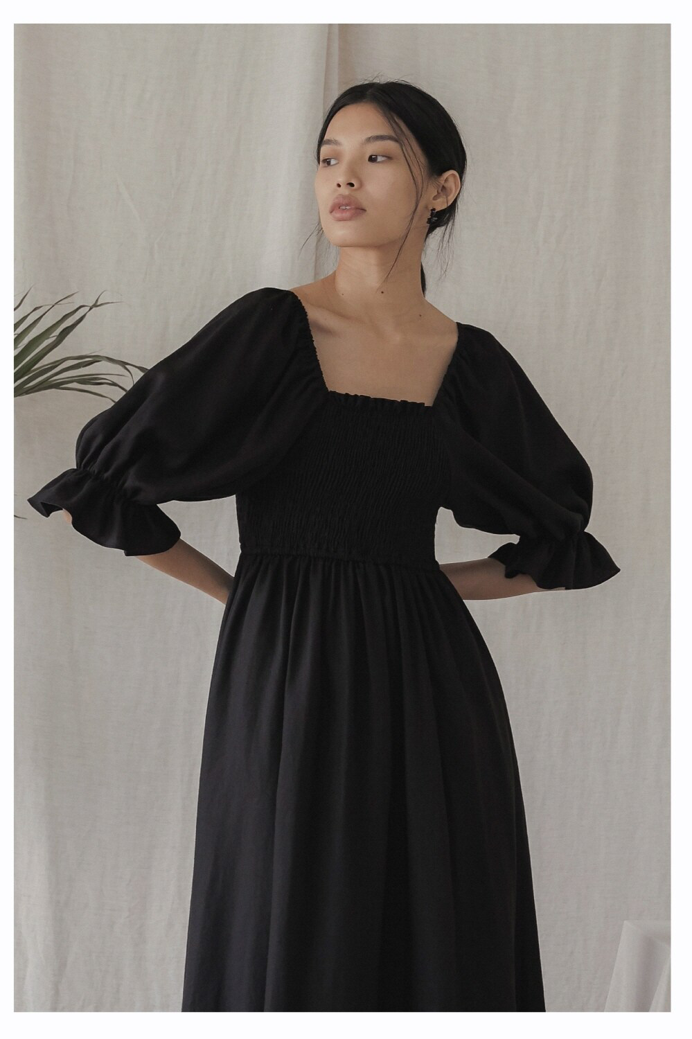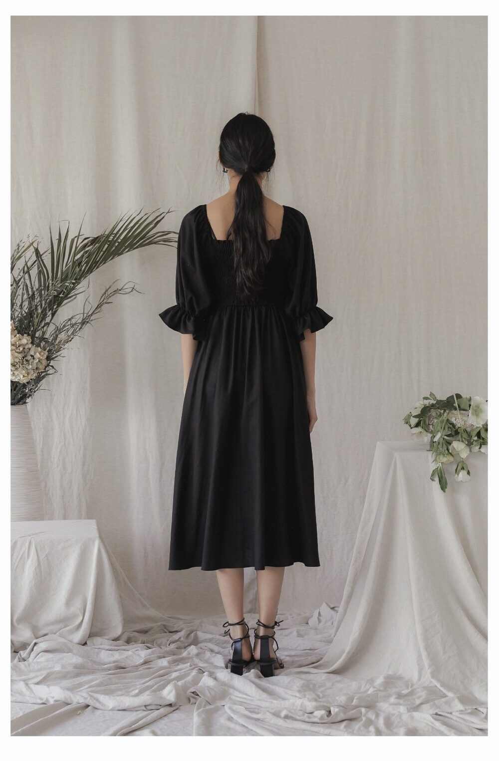 Laura Ren presents this effortlessly graceful linen midi dress, designed for both comfort and sophistication. Featuring a shirred bodice and voluminous puff sleeves, the dress flatters the silhouette while offering ease of movement. Its square neckline adds a modern twist to this classic design, perfect for garden parties or weekend getaways. Crafted from breathable, high-quality linen, this dress keeps you stylish and cool in any setting. Pair with lace-up sandals or flats for an elevated daytime look.
