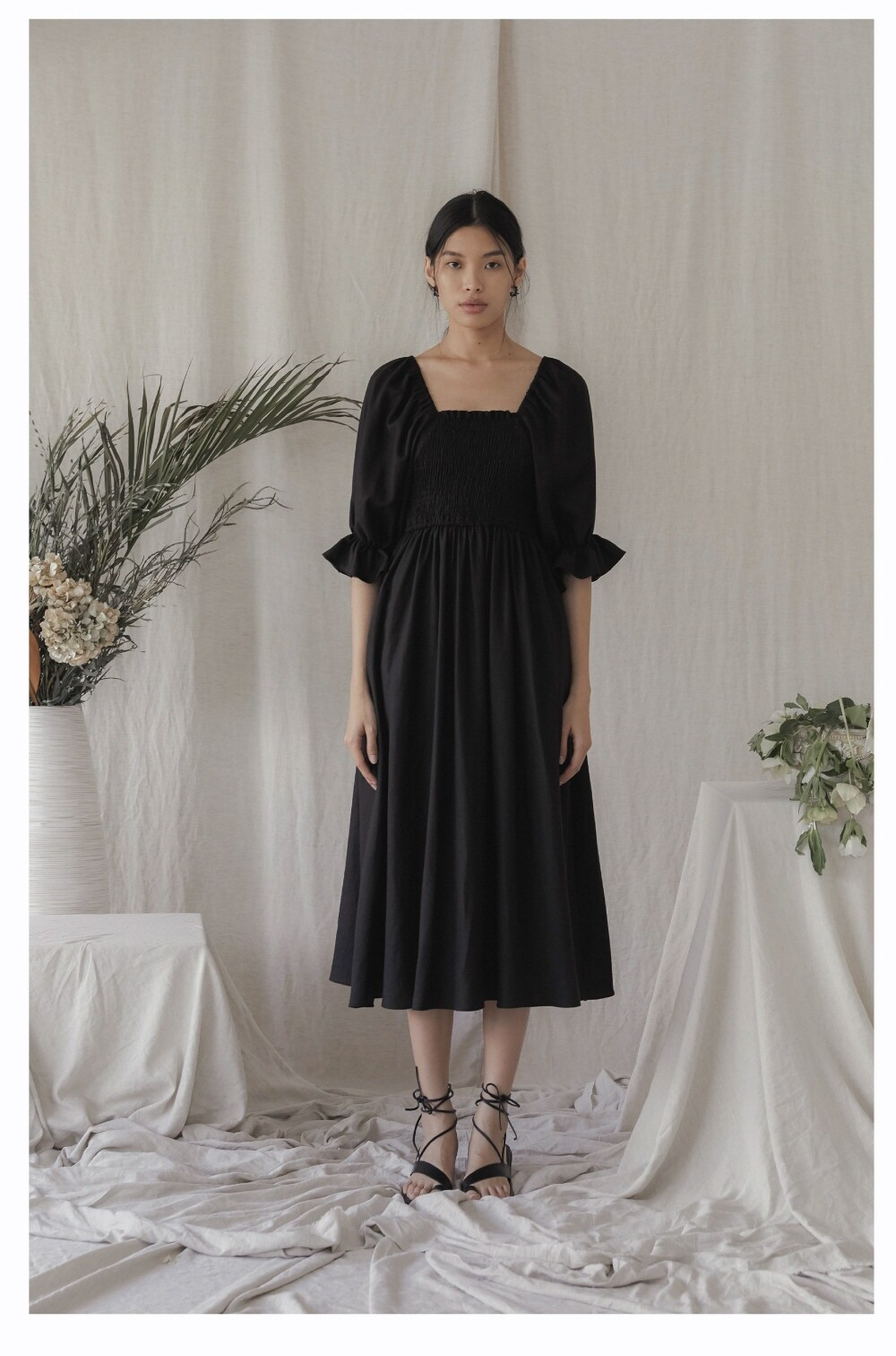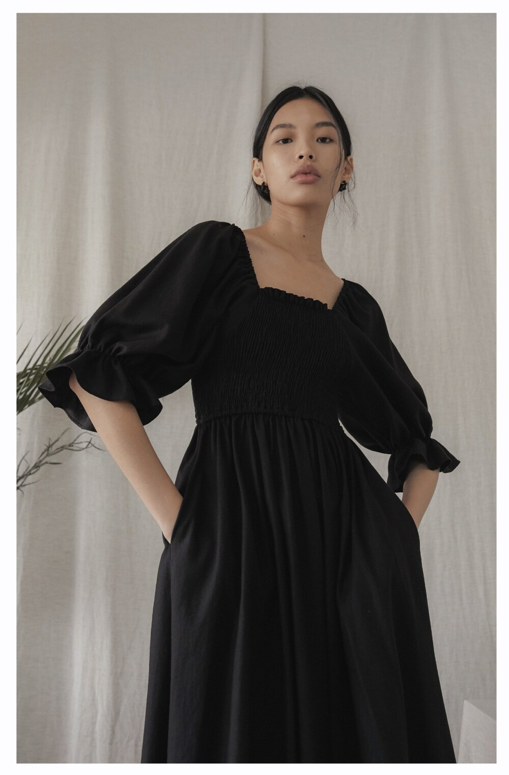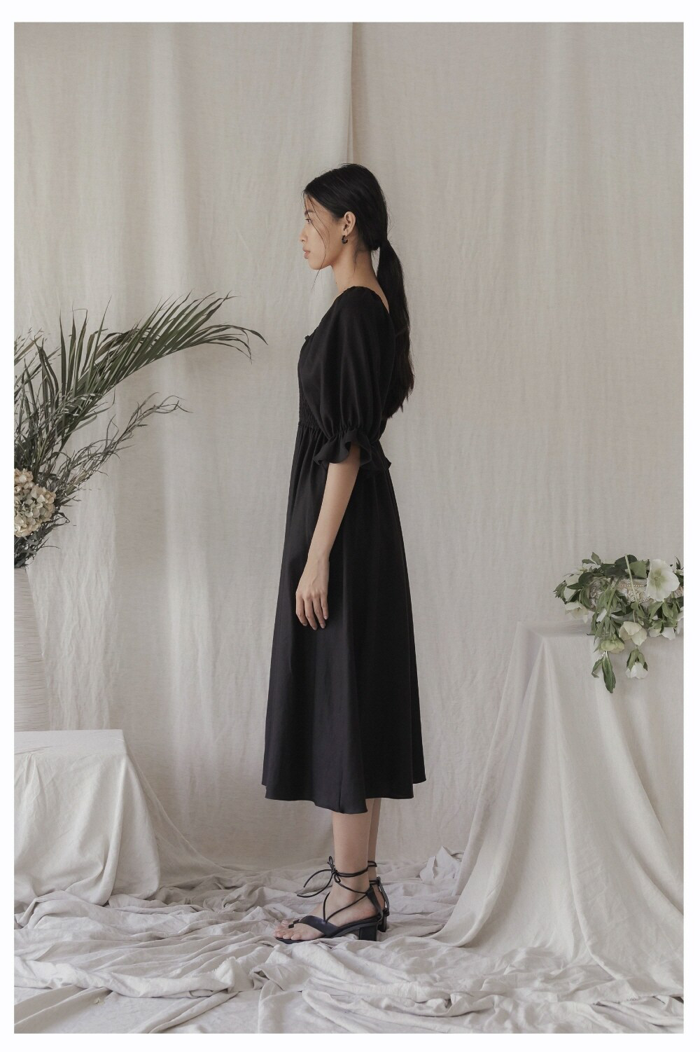 Laura Ren presents this effortlessly graceful linen midi dress, designed for both comfort and sophistication. Featuring a shirred bodice and voluminous puff sleeves, the dress flatters the silhouette while offering ease of movement. Its square neckline adds a modern twist to this classic design, perfect for garden parties or weekend getaways. Crafted from breathable, high-quality linen, this dress keeps you stylish and cool in any setting. Pair with lace-up sandals or flats for an elevated daytime look.