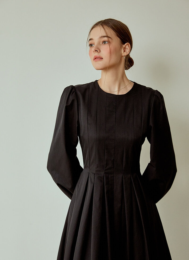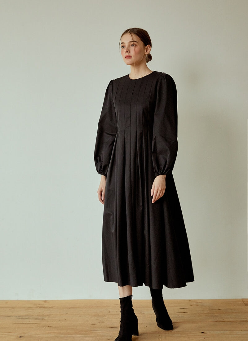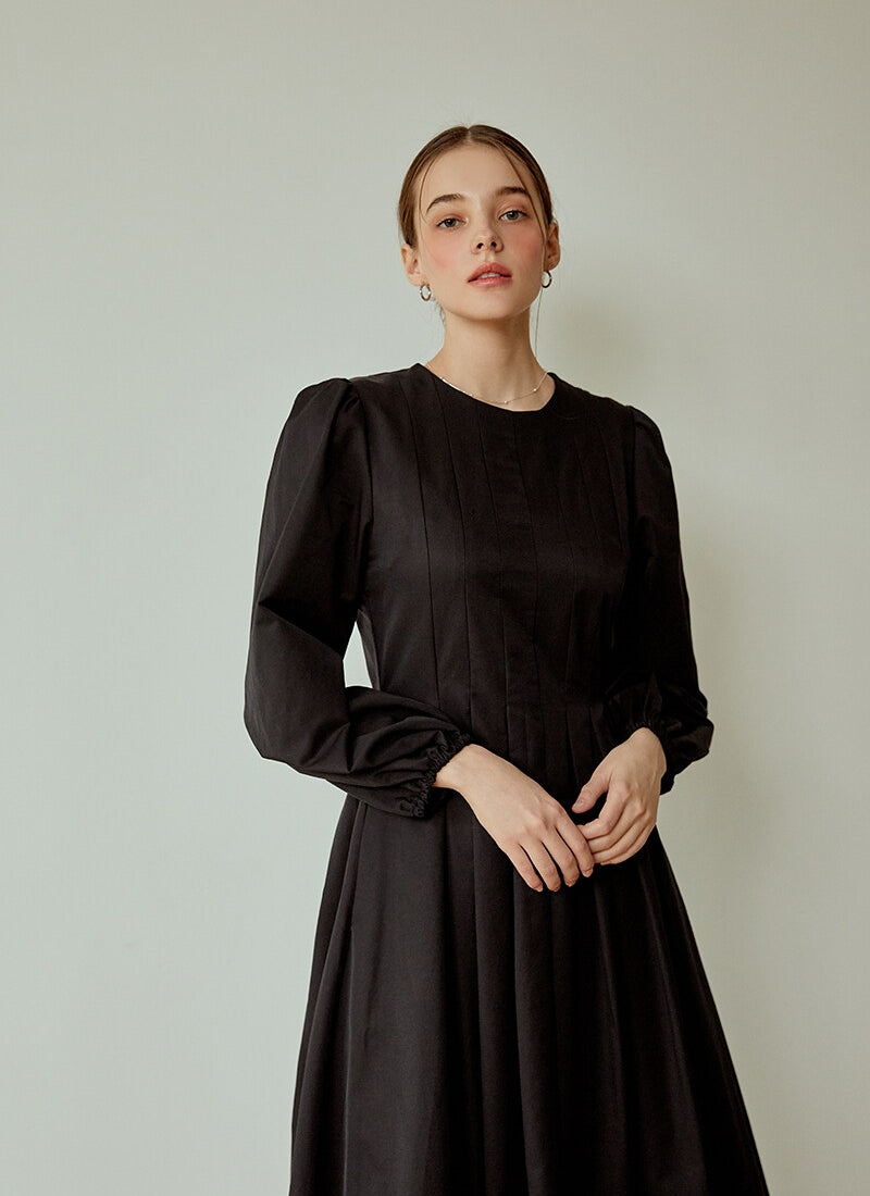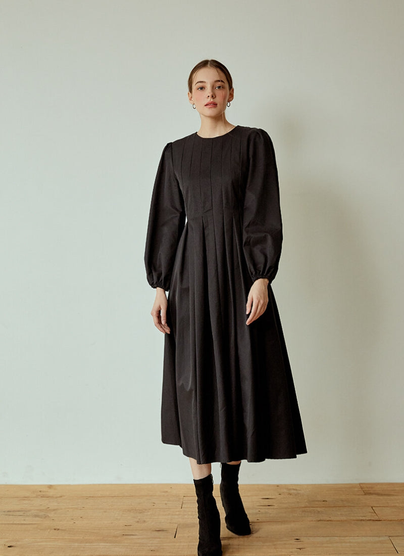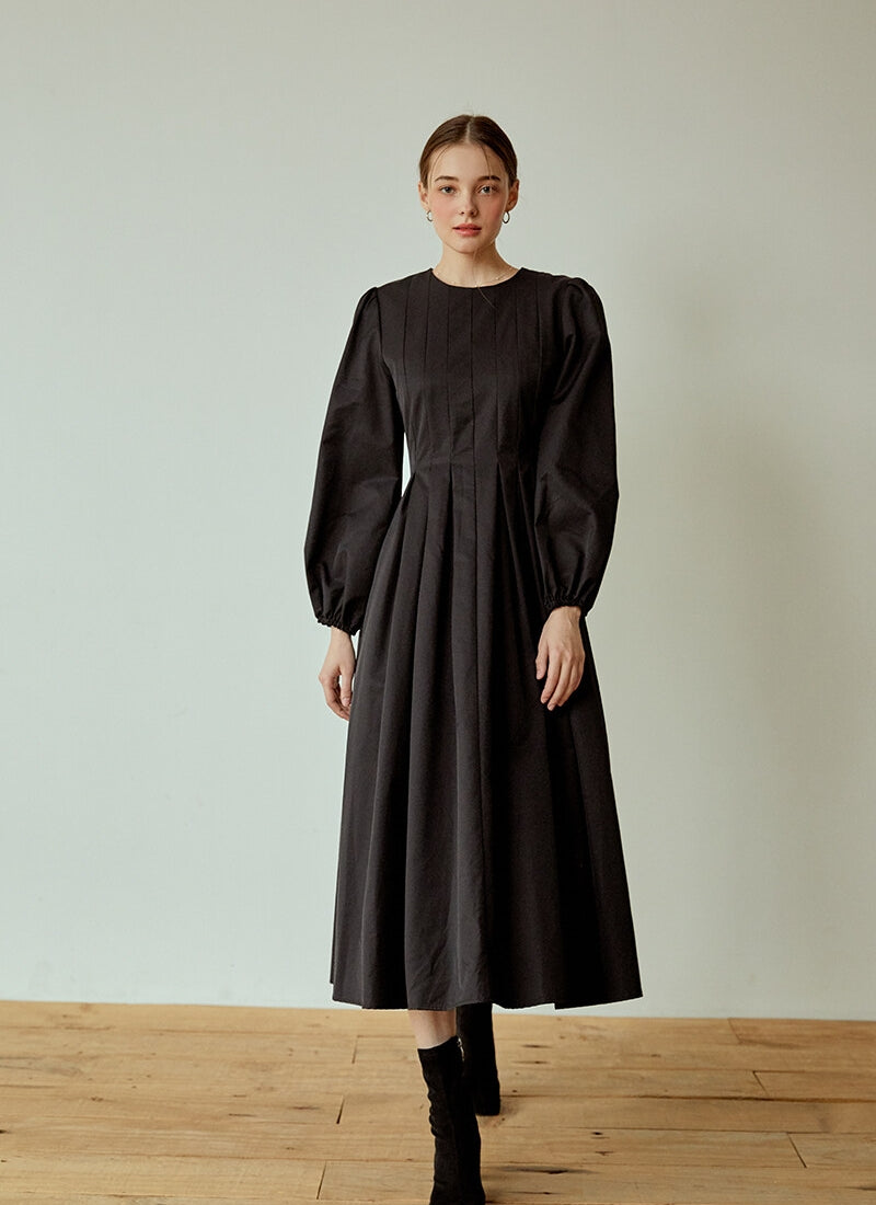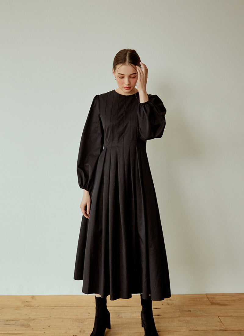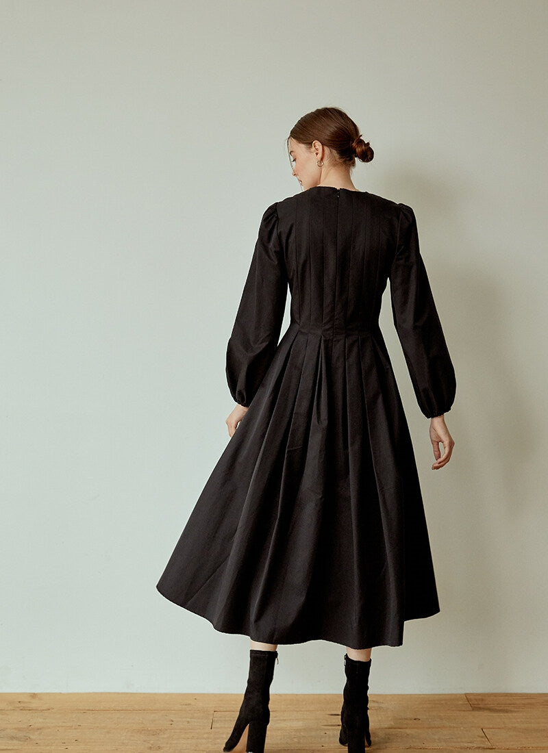 Discover timeless sophistication with this structured cotton poplin dress by Laura Ren. Crafted from premium cotton poplin fabric, this midi-length design features refined vertical seams, voluminous long puff sleeves, and a gracefully pleated skirt for elegant movement. The tailored bodice highlights the waist, while the concealed back zipper ensures a seamless fit. Ideal for formal occasions or elevated everyday wear, this cotton poplin dress offers breathable comfort and enduring style. Laura Ren brings modern femininity to life with impeccable craftsmanship and luxurious detail.