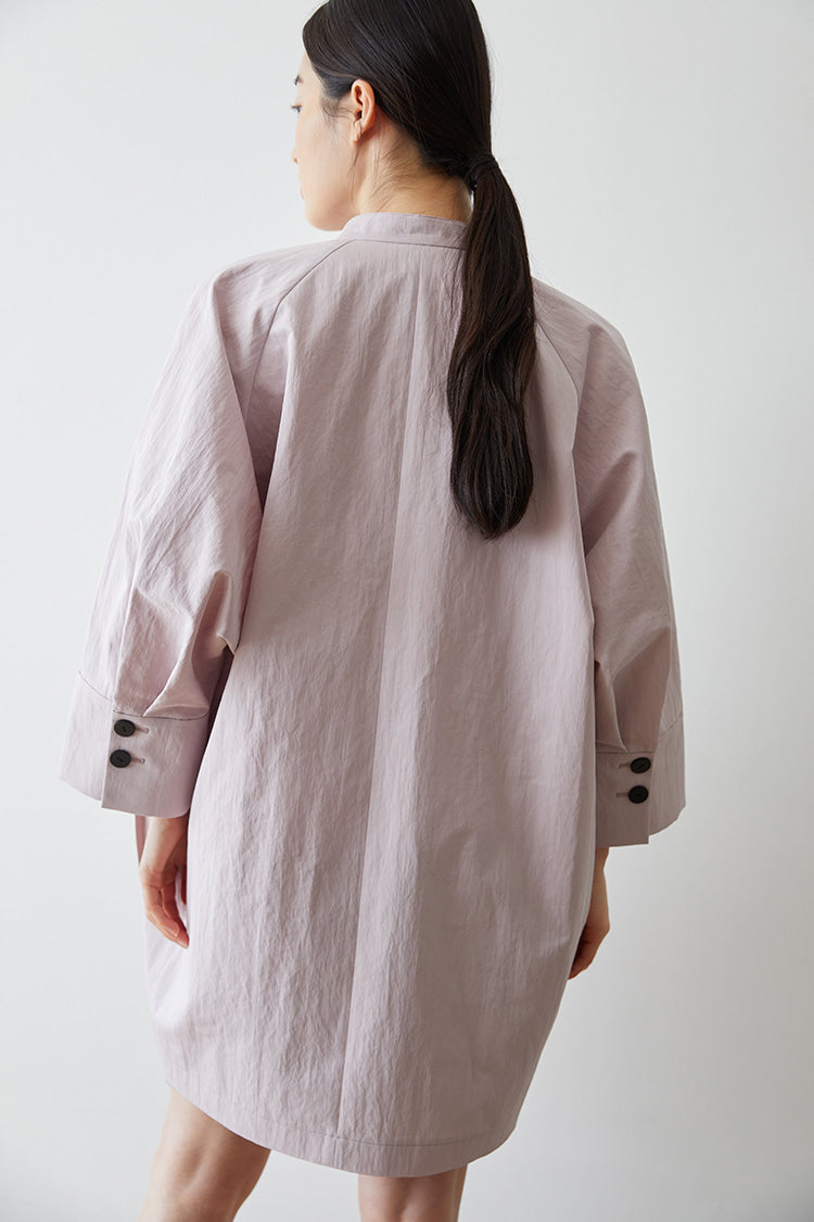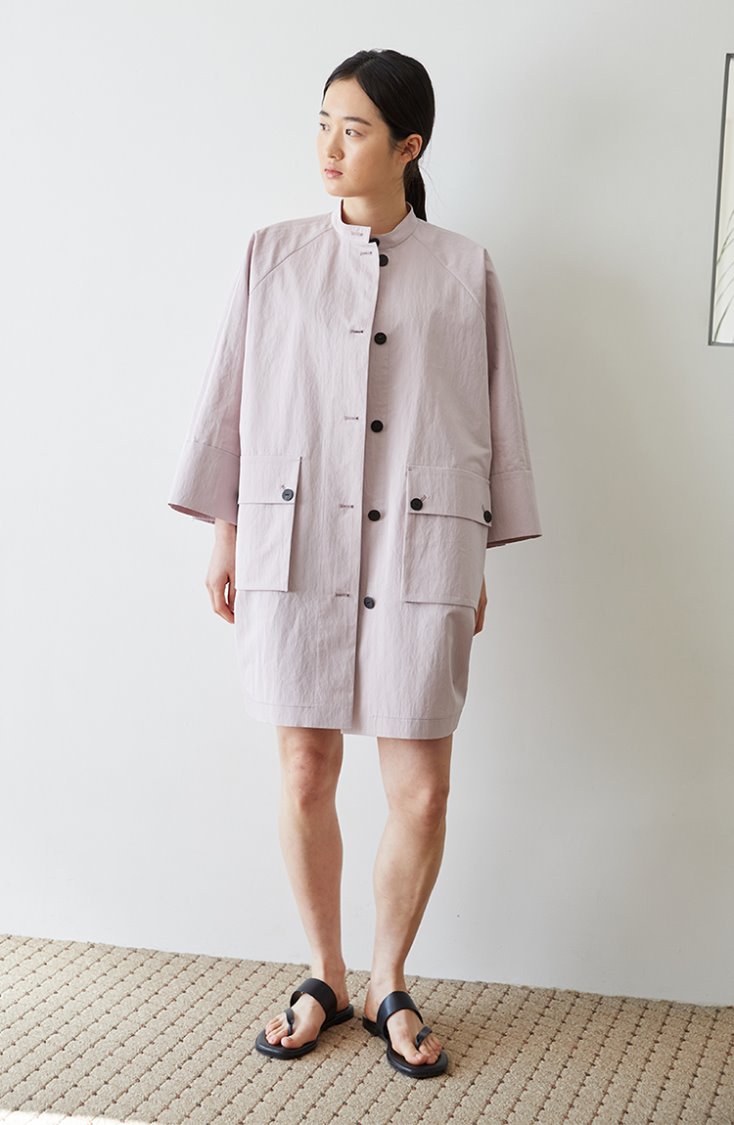 Embrace a clean, structured silhouette with this shirt-style linen dress by Laura Ren. Featuring a minimalist stand collar, full button-down front, and oversized flap pockets, this piece blends utility with modern elegance. Crafted from breathable linen, it’s lightweight yet sharply tailored — perfect for transitional weather or layering over relaxed outfits. The slightly boxy shape and cropped sleeve design offer both comfort and a contemporary edge, making it a versatile staple for refined casual wear.