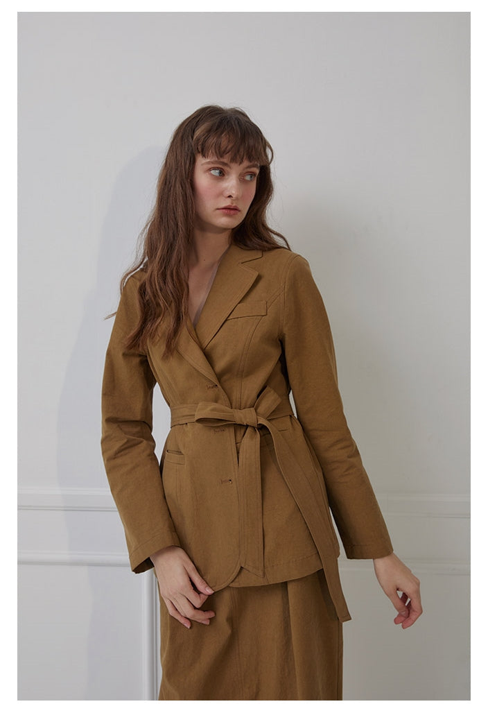 Refined yet relaxed, this tailored linen blazer from Laura Ren is designed for effortless sophistication. Cut with classic notched lapels and sharp seaming for structure, the silhouette is softened by a detachable self-tie belt that cinches the waist for a feminine finish. The breathable linen fabric ensures comfort throughout the day, while front welt pockets and subtle shoulder shaping keep it polished. Whether styled with coordinating linen separates or layered over dresses, this blazer is a versatile staple in Laura Ren’s modern tailoring collection—perfect for elevating everyday and occasionwear alike.