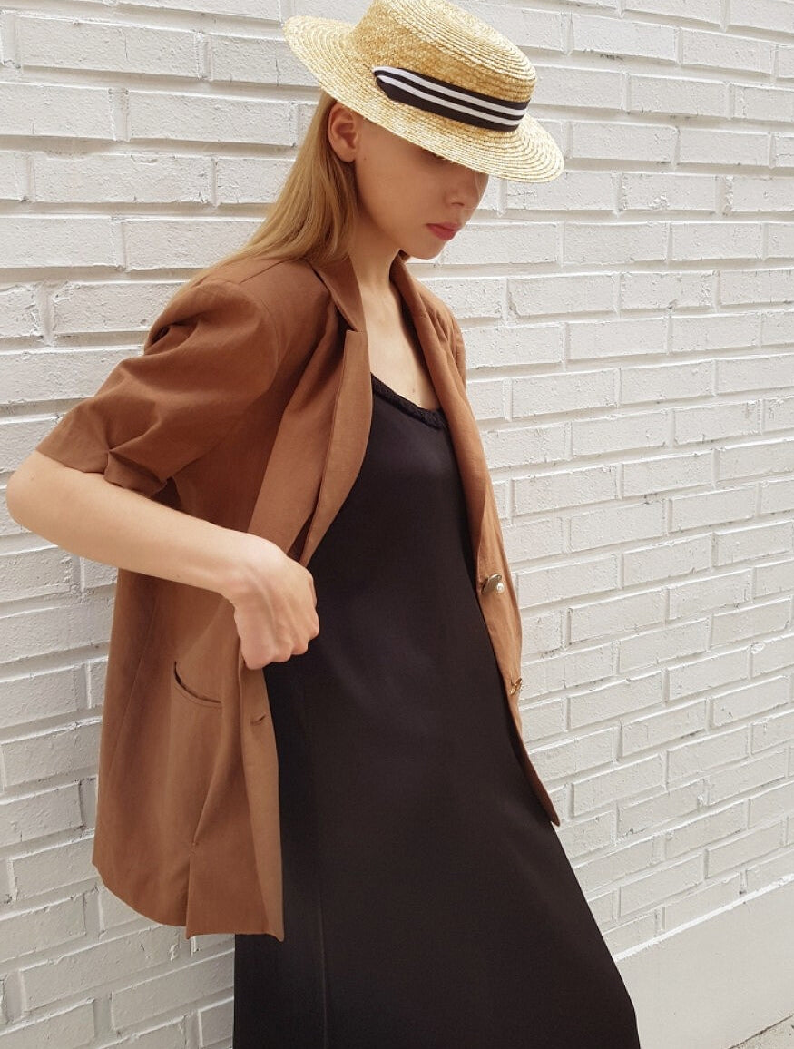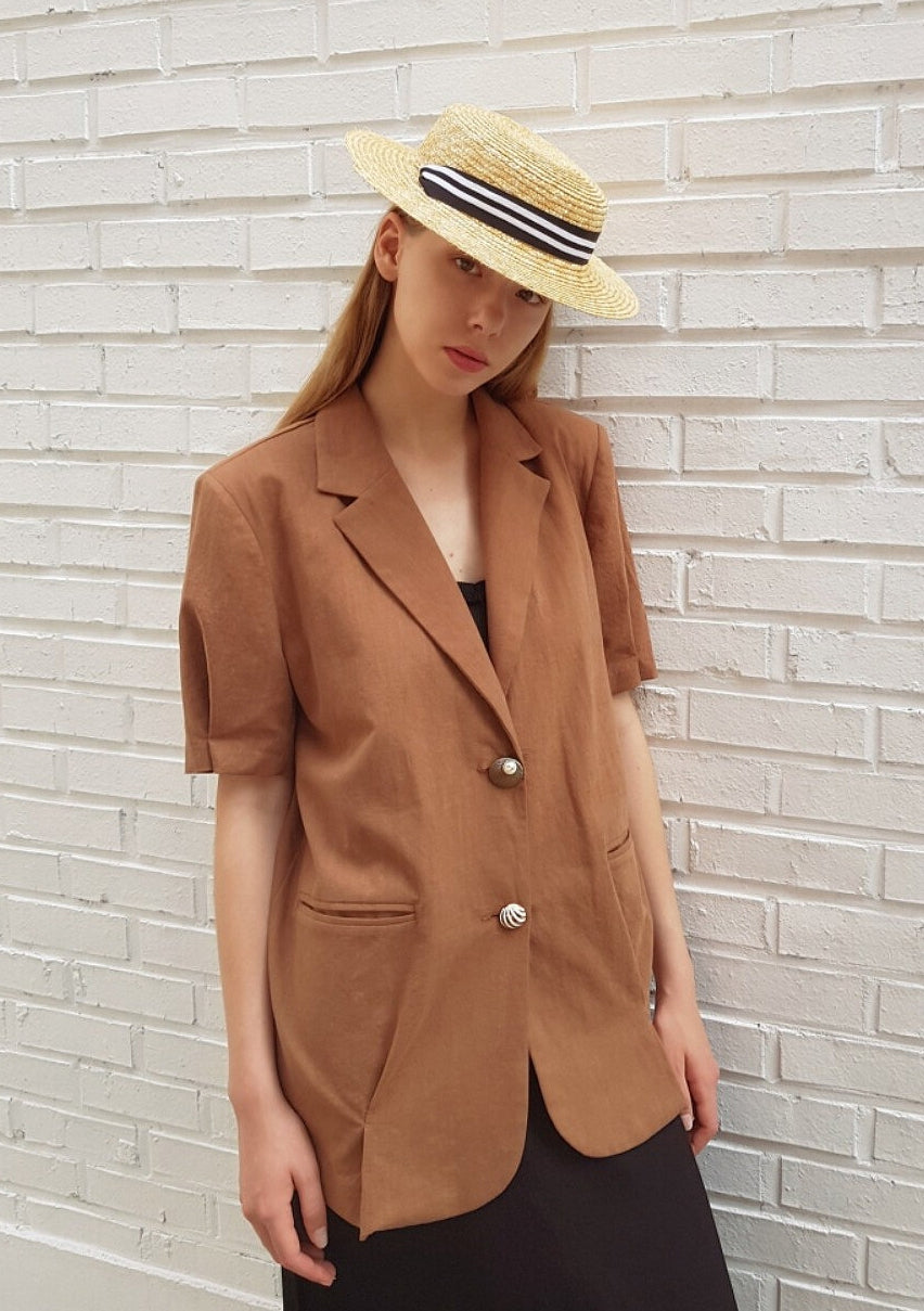 The short-sleeve linen blazer by Laura Ren is a versatile summer essential that fuses tailoring with laid-back charm. Crafted from breathable natural linen, it features a relaxed silhouette with notched lapels, flap pockets, and unique double buttons that add a playful twist. Designed to be worn open or fastened, this piece layers effortlessly over dresses, tanks, or blouses, making it perfect for warm-weather styling. Whether you’re heading to a casual brunch or a creative workspace, this Laura Ren blazer elevates your look with ease and modern sophistication.