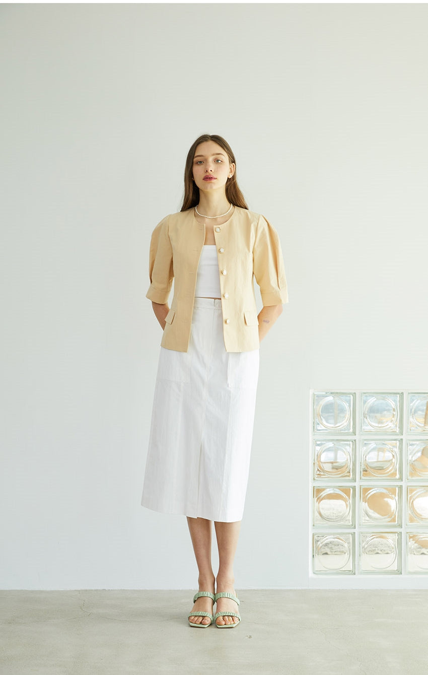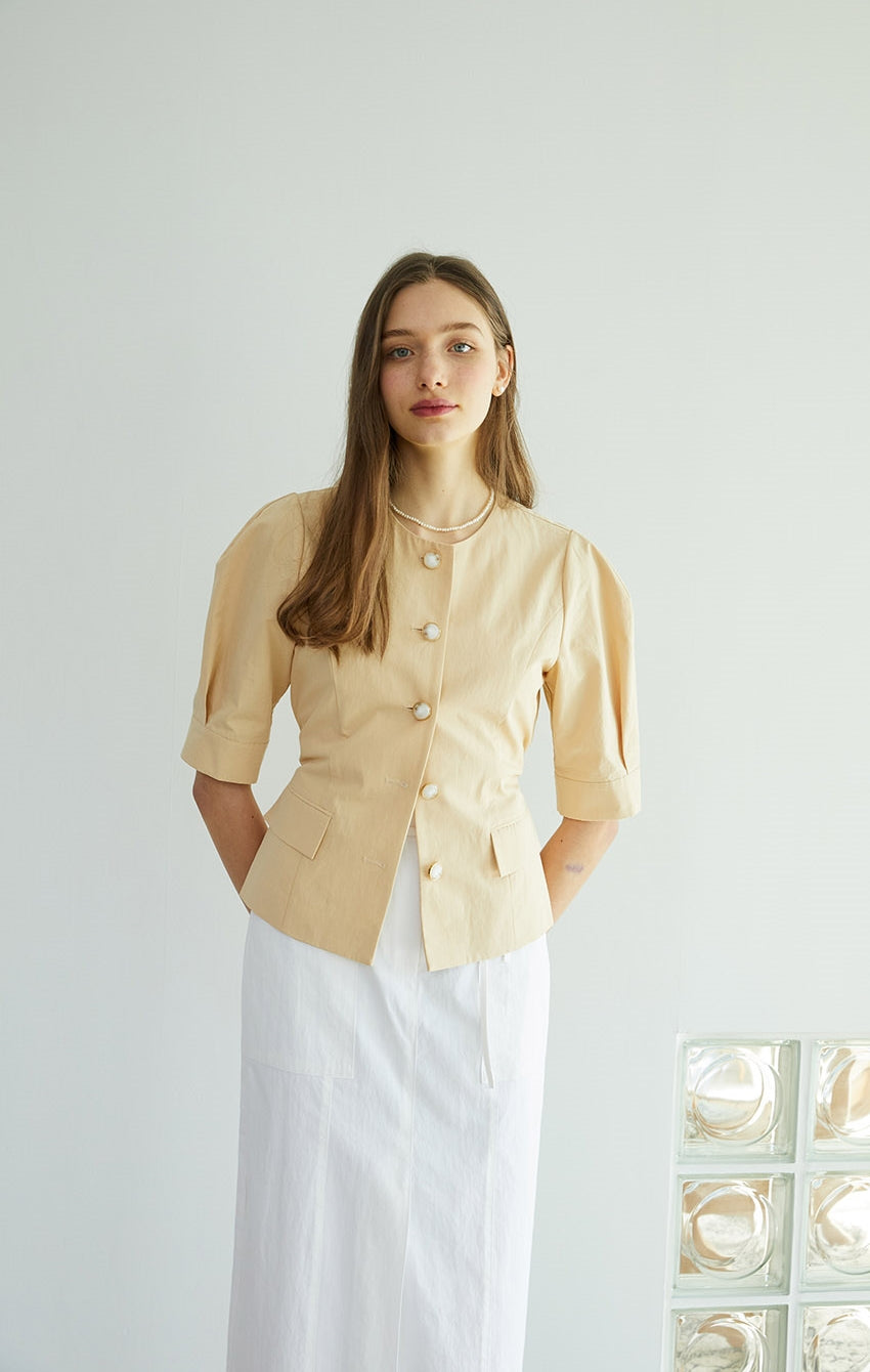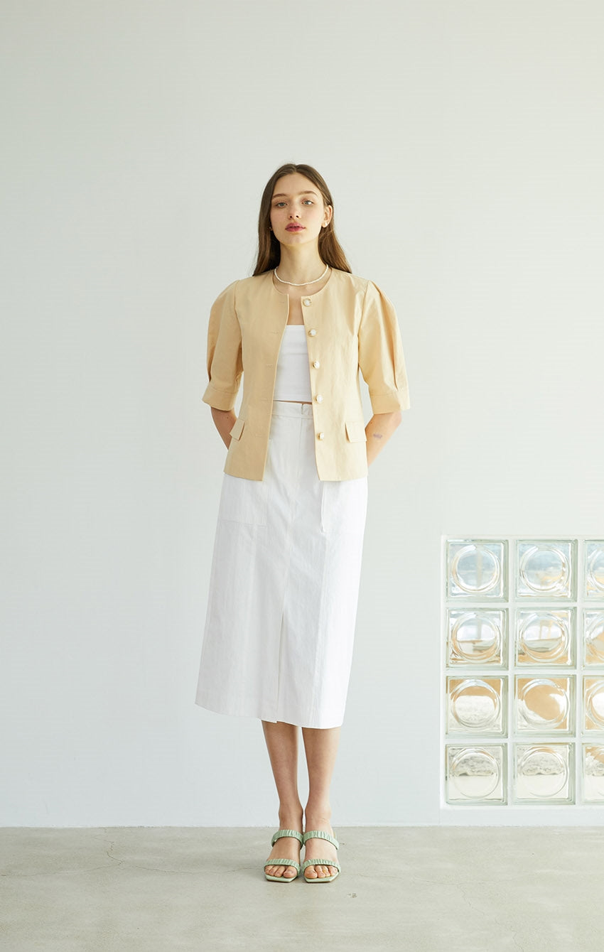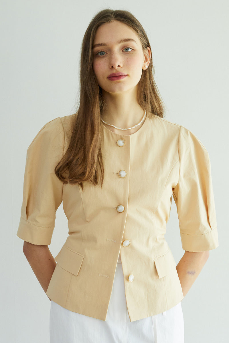 Elevate your warm-weather wardrobe with this tailored linen blouse by Laura Ren, designed to blend classic structure with soft femininity. Featuring a round neckline, pearl-style button front, and elbow-length puff sleeves, this blouse offers a clean, polished silhouette. A subtle back waist tie allows for an adjustable fit that flatters the figure, while the breathable linen fabric ensures comfort throughout the day. Whether worn layered over a tank or styled solo with high-waisted skirts or trousers, this Laura Ren piece is a versatile staple for elegant daywear and modern sophistication.