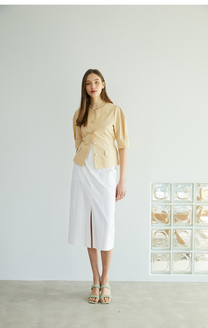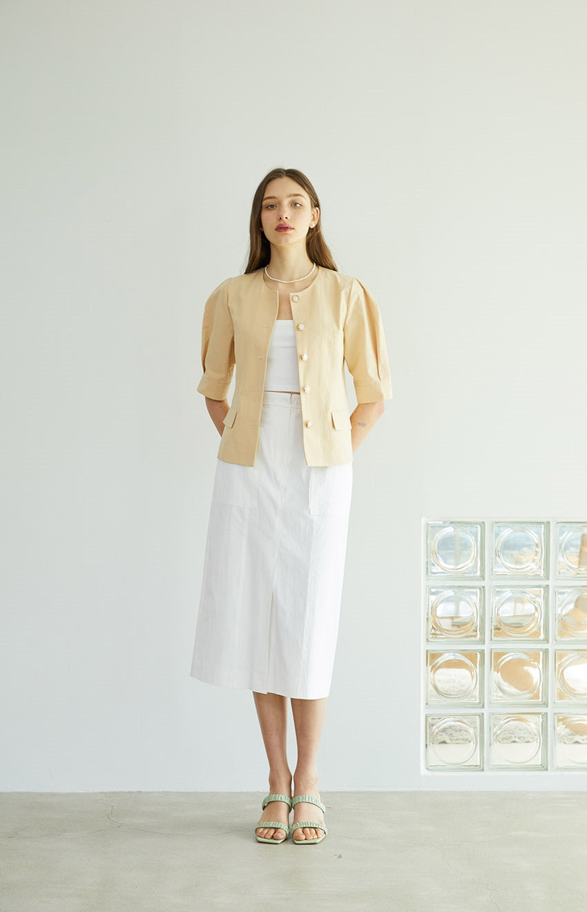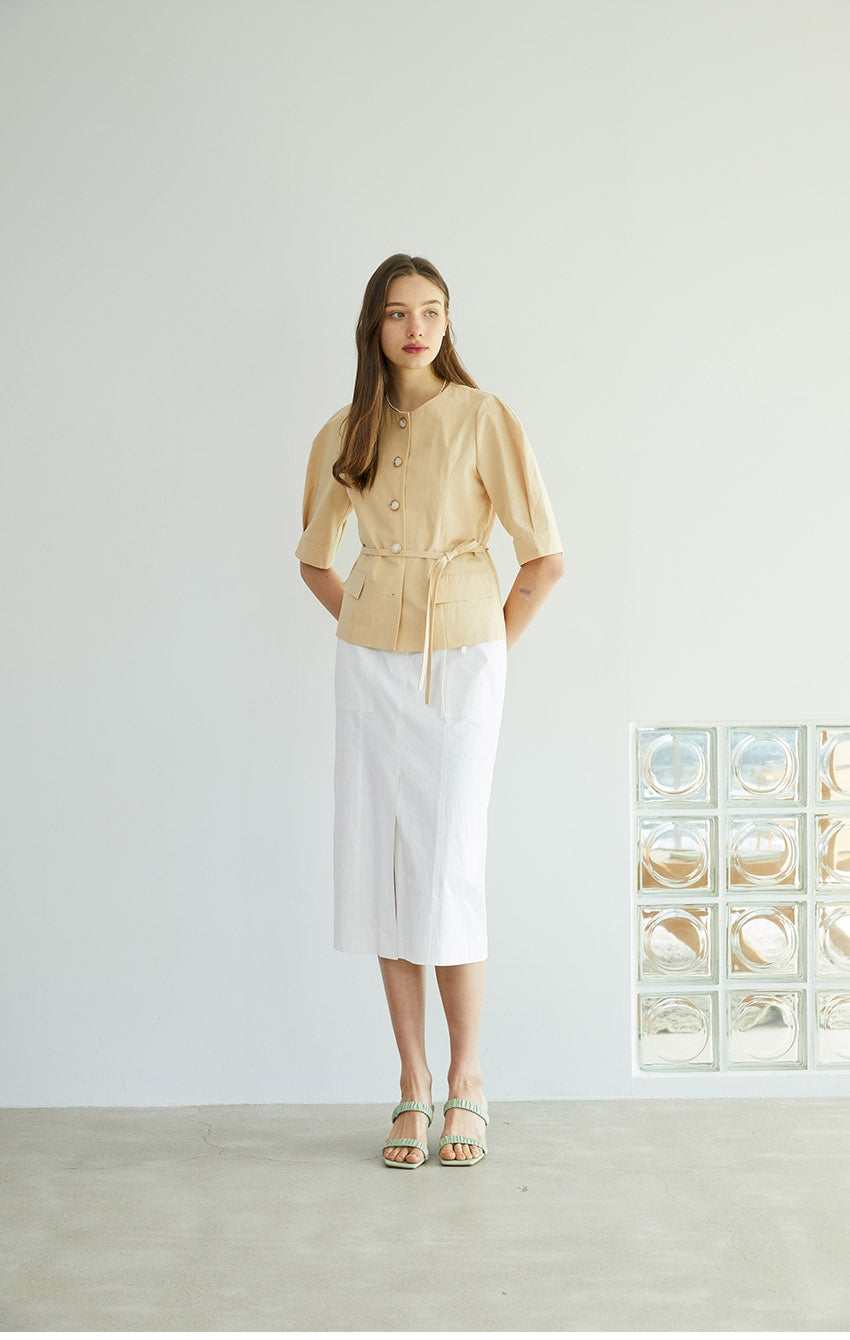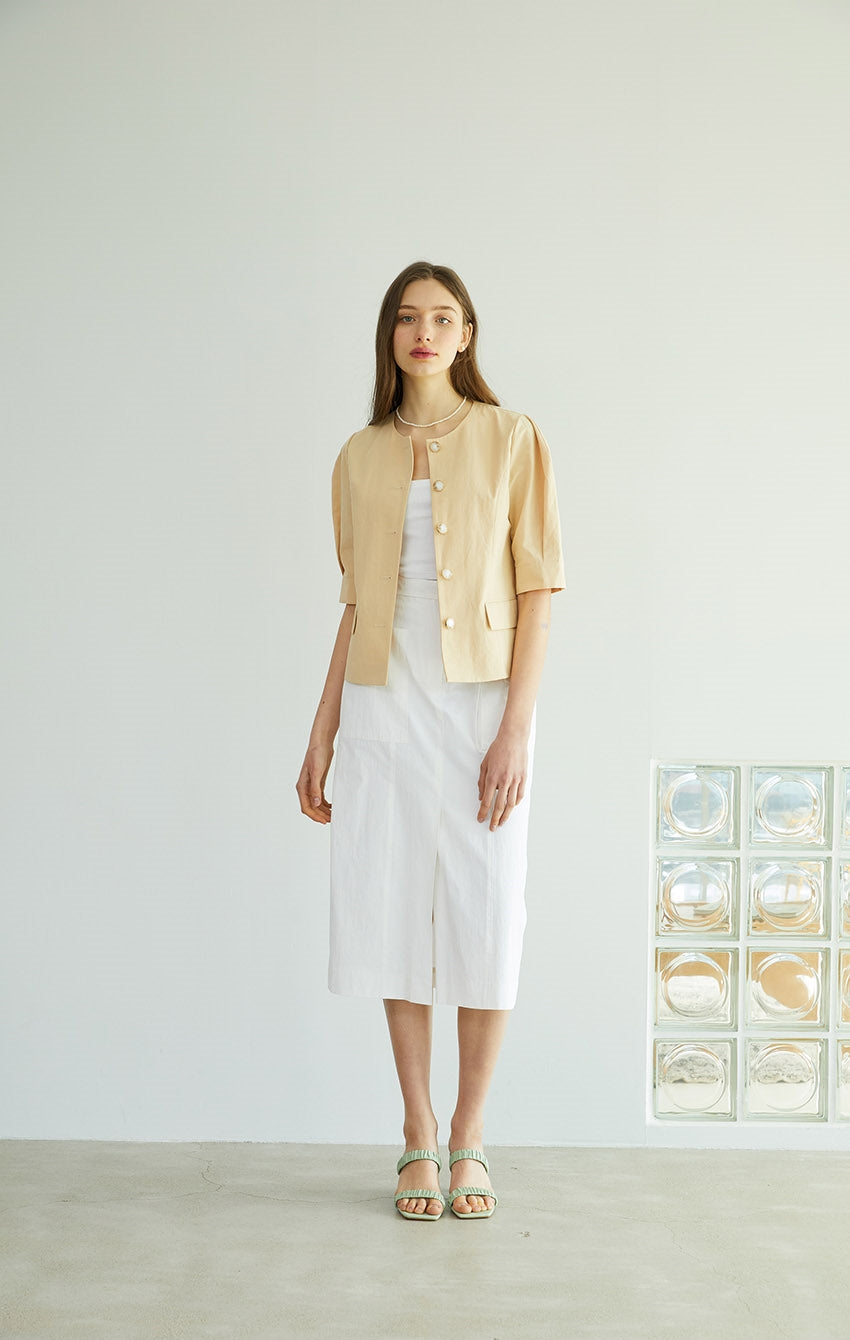 Elevate your warm-weather wardrobe with this tailored linen blouse by Laura Ren, designed to blend classic structure with soft femininity. Featuring a round neckline, pearl-style button front, and elbow-length puff sleeves, this blouse offers a clean, polished silhouette. A subtle back waist tie allows for an adjustable fit that flatters the figure, while the breathable linen fabric ensures comfort throughout the day. Whether worn layered over a tank or styled solo with high-waisted skirts or trousers, this Laura Ren piece is a versatile staple for elegant daywear and modern sophistication.