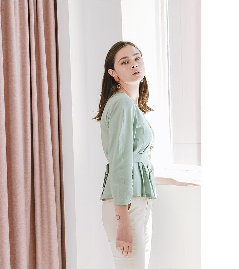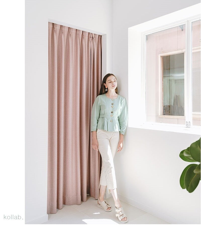 This tailored linen blouse from Laura Ren is a refined essential for the modern woman’s wardrobe. Crafted from breathable, lightweight linen fabric, it features a graceful round neckline and elegant vertical pleats that enhance the natural silhouette. A row of sculptural buttons adds a subtle statement down the front, while the cinched waist with a tie-back belt offers a flattering, feminine fit. Perfect for day-to-evening transitions, this blouse combines comfort with timeless sophistication. Laura Ren ensures that every detail is designed with precision and a touch of contemporary elegance.