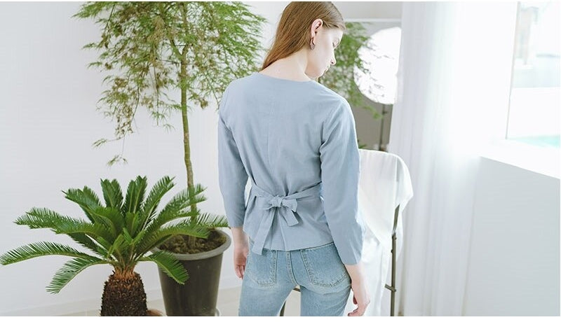 Elevate your wardrobe with this timeless linen blouse from Laura Ren, crafted with premium natural linen for breathable comfort and enduring style. This design features a structured silhouette with pleated front detail and asymmetrical button accents, while the waist tie at the back adds definition and feminine charm. Perfect for both casual and refined occasions, this blouse pairs beautifully with high-waisted trousers or jeans. A versatile staple, Laura Ren's linen blouse is designed for women who appreciate refined textures, impeccable fit, and sophisticated everyday dressing.