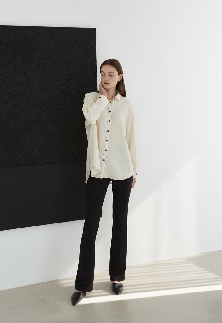 The linen shirt by Laura Ren blends timeless tailoring with everyday elegance. Crafted from high-quality linen, it features a structured collar, contrast buttons, and subtle piping that adds definition to the silhouette. Its relaxed yet polished fit makes it perfect for both office layering and off-duty styling. Whether worn tucked into trousers or over leggings, the breathable fabric and thoughtful details make this piece a versatile staple in your wardrobe. Experience elevated minimalism with the Laura Ren signature.