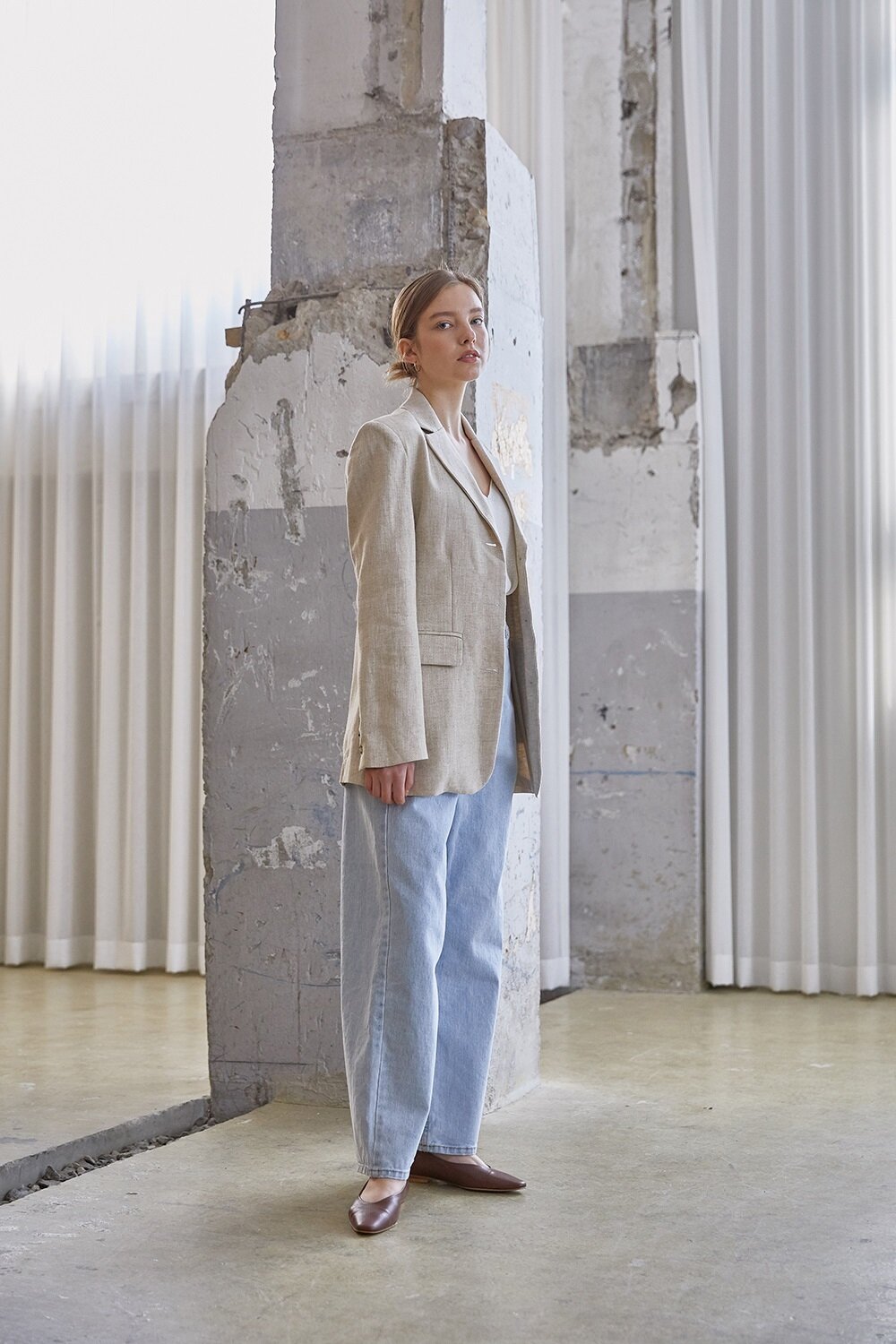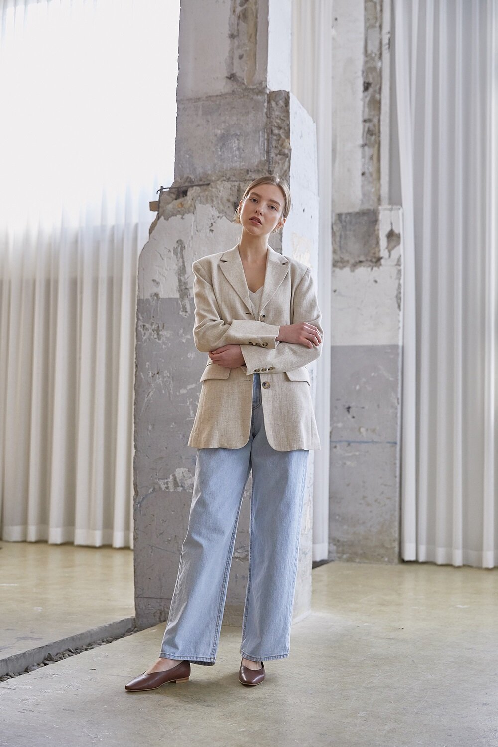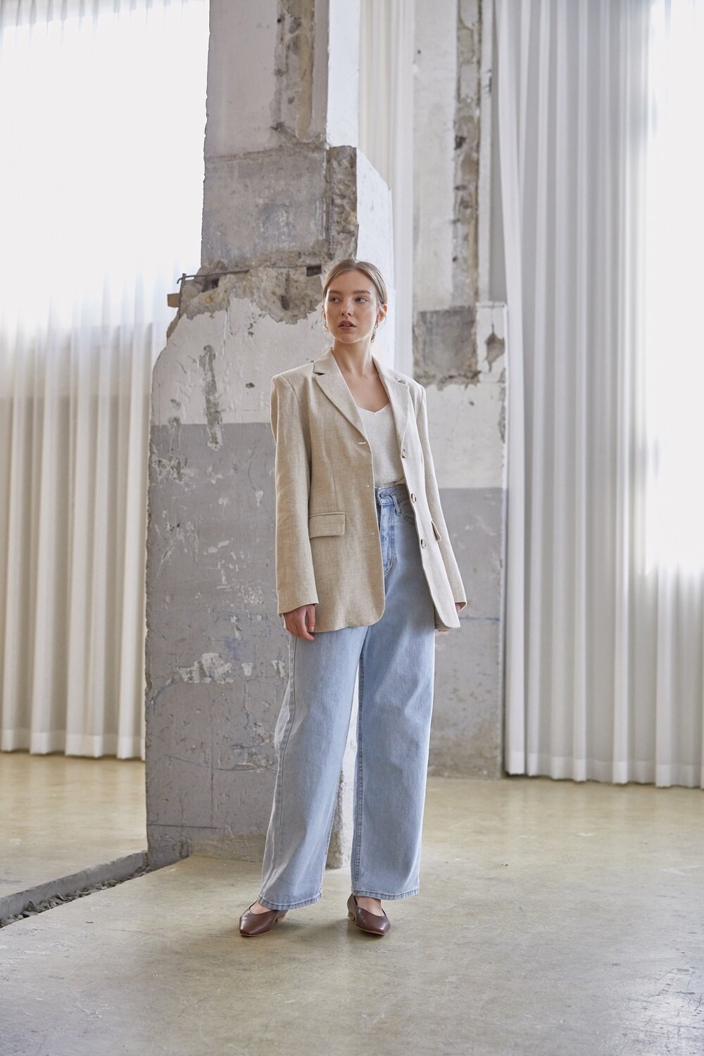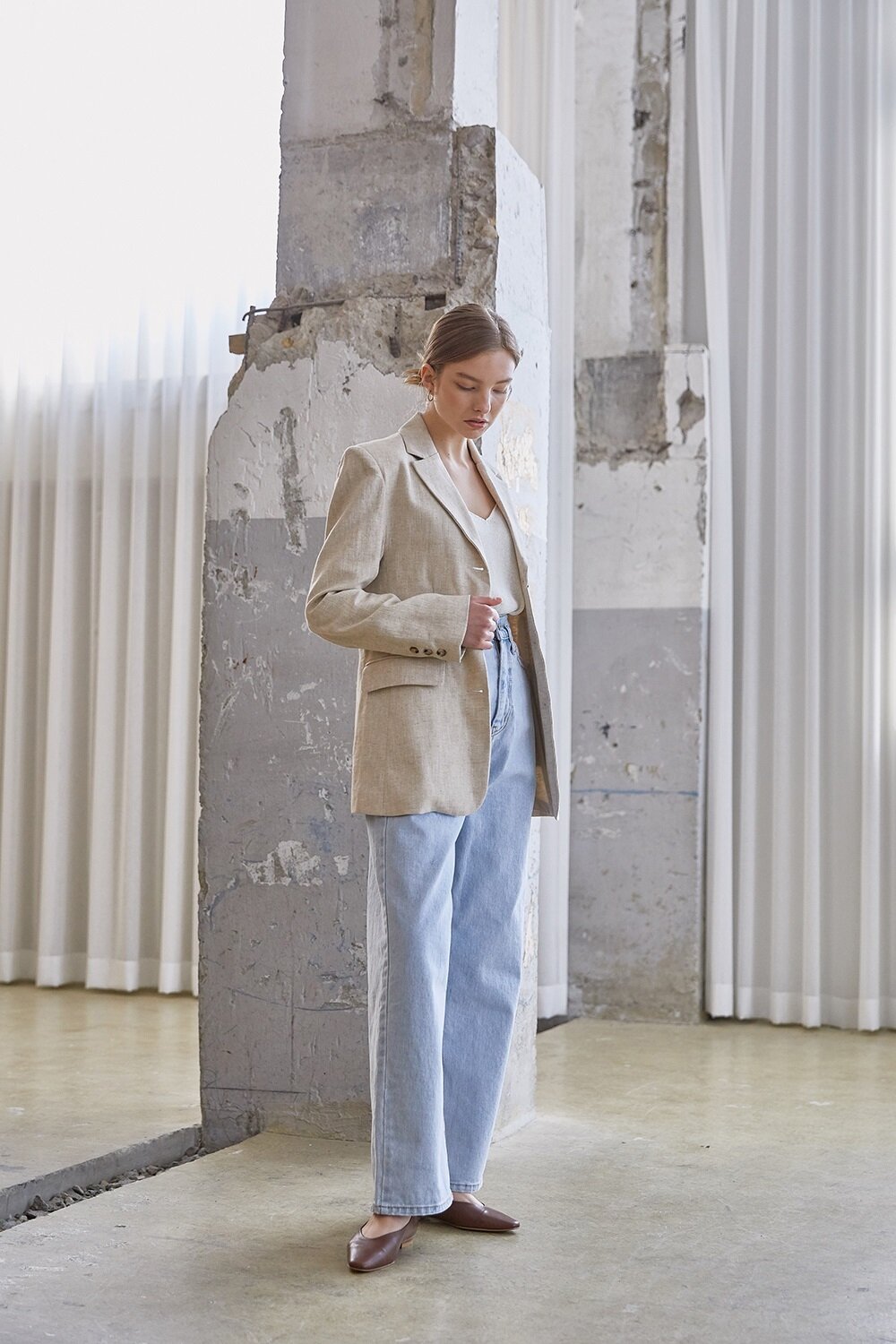 The Laura Ren tailored linen blazer is a refined essential for modern wardrobes. Crafted from breathable, high-quality linen, this structured blazer features a single-breasted design with a classic notch lapel, long sleeves, and flap pockets. Its tailored silhouette is elevated with tonal button accents, offering versatility from office to weekend wear. The blazer’s natural texture and lightweight finish make it an ideal layering piece across seasons. Perfectly balancing sophistication and comfort, this blazer by Laura Ren enhances any outfit with timeless elegance and effortless polish.