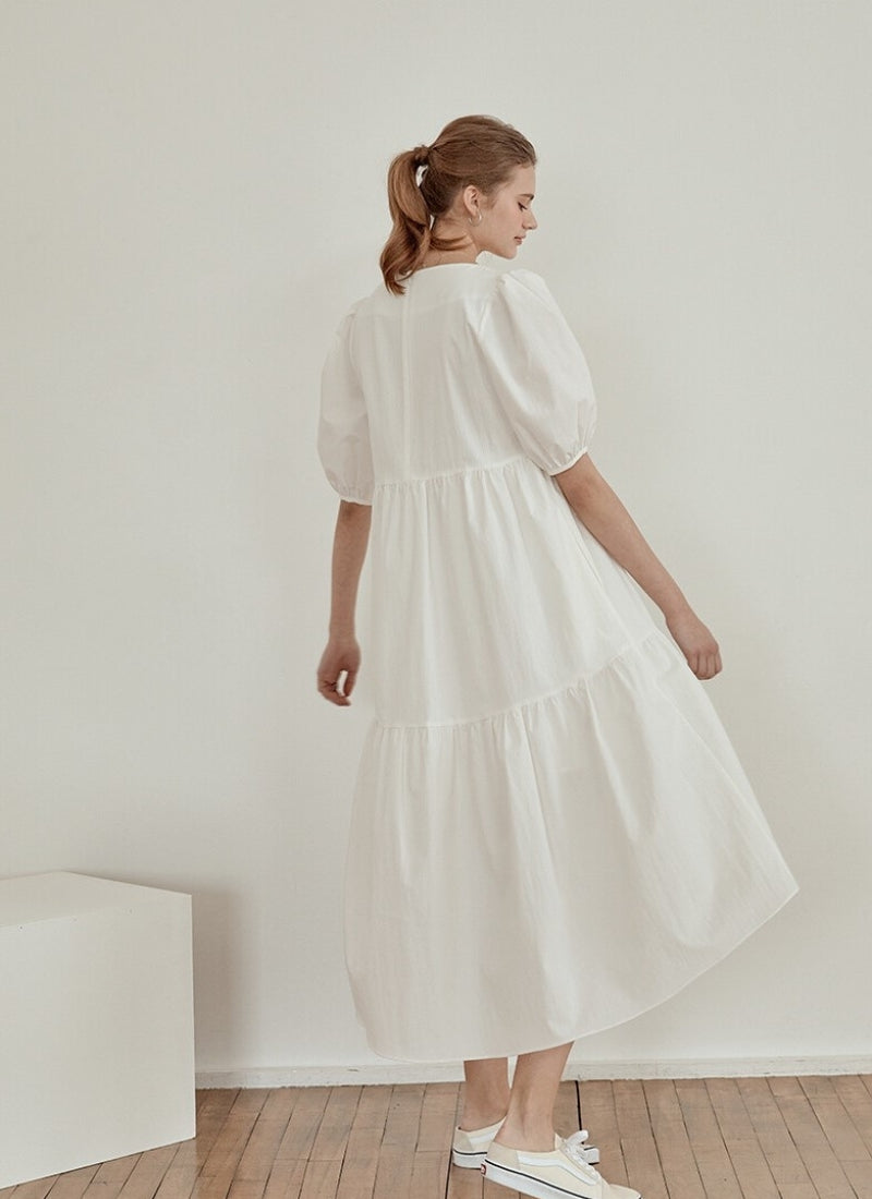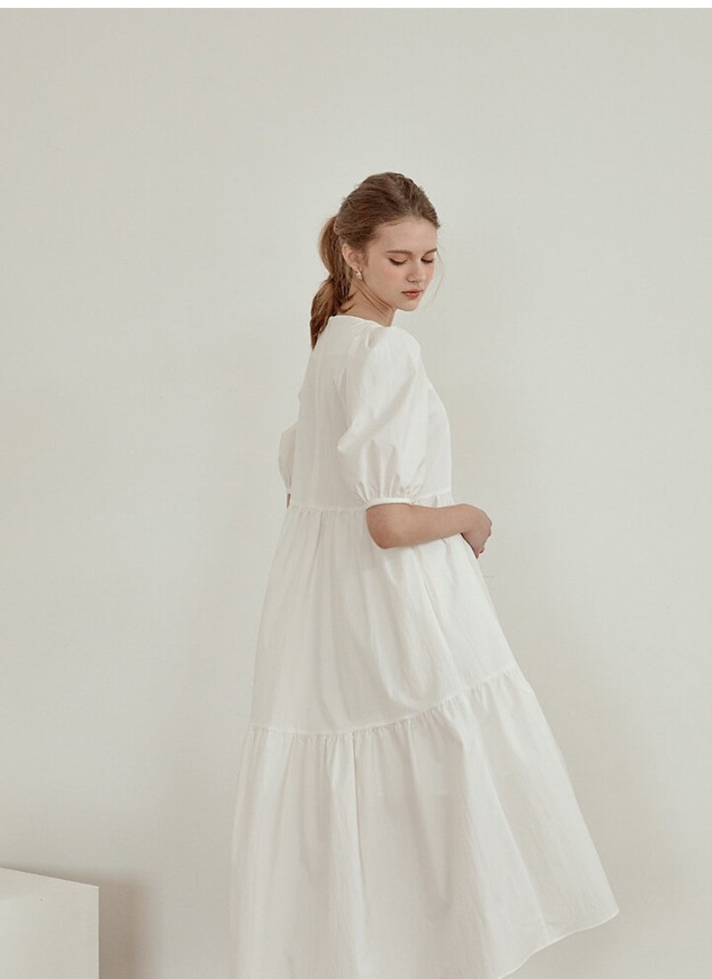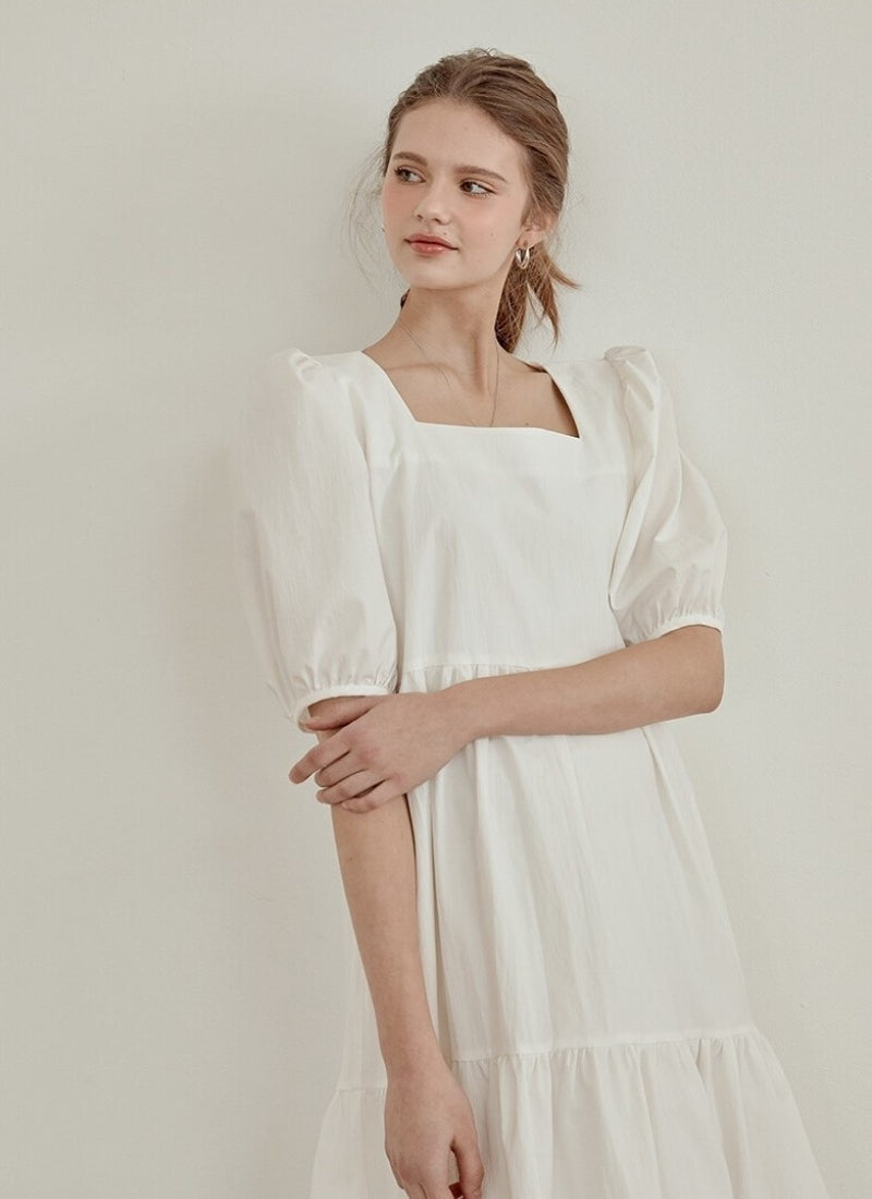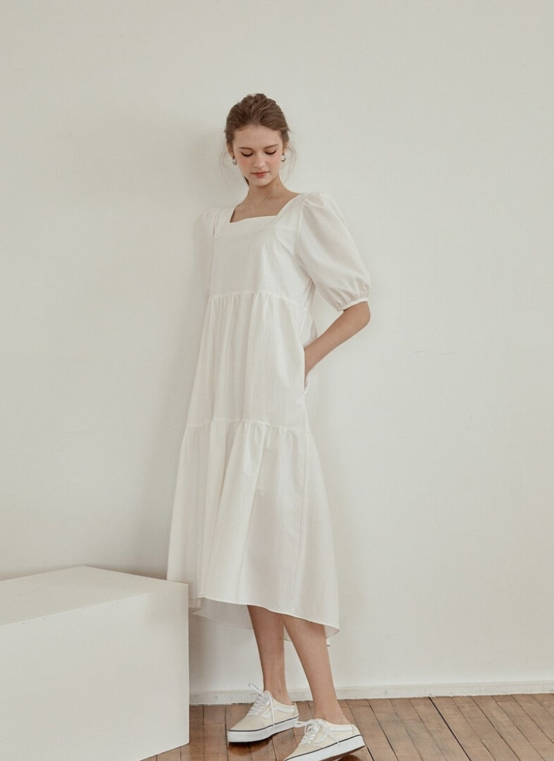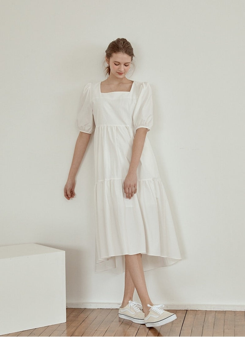 Elevate your style with this cotton poplin midi dress by Laura Ren, designed to blend classic femininity with everyday ease. Featuring a structured square neckline and voluminous puff sleeves, this dress brings a touch of sophistication to any occasion. The tiered skirt flows effortlessly, offering graceful movement and a flattering high-low silhouette. Crafted from crisp, breathable cotton poplin, it’s perfect for warm-weather elegance or layered charm. Laura Ren’s signature tailoring ensures comfort and timeless appeal.