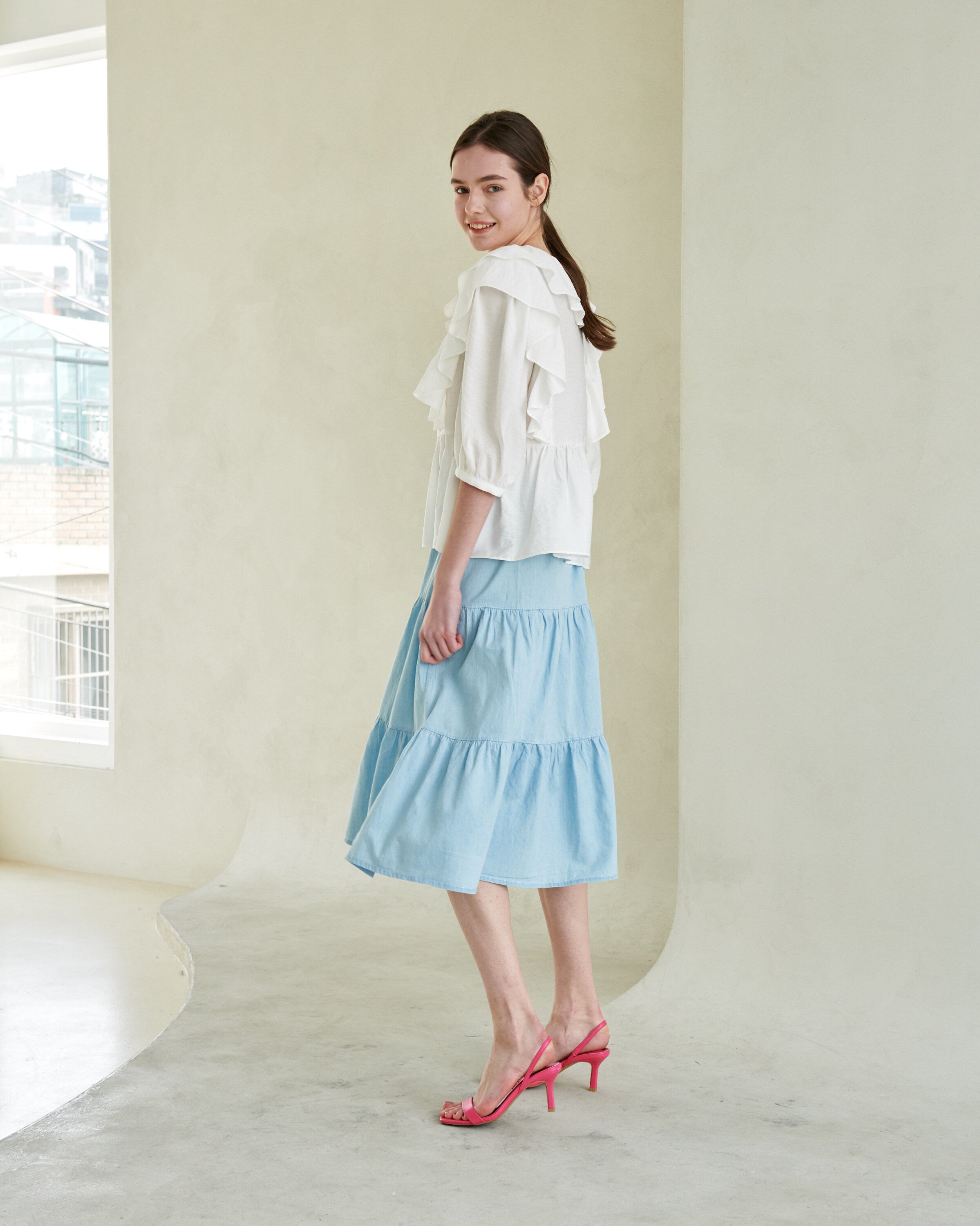 Discover effortless femininity in this tiered linen midi skirt by Laura Ren, designed for graceful movement and all-day comfort. Crafted from high-quality, breathable linen, this skirt features a flowy A-line silhouette enhanced by soft tiered panels that create gentle volume. The elasticated waistband offers a comfortable fit while maintaining an elegant shape, making it a versatile choice for refined daywear or relaxed vacation looks. Whether paired with a fitted blouse or a breezy top, this linen skirt captures timeless charm and ease, reflecting Laura Ren’s dedication to elevated casual wear with a luxurious touch.
