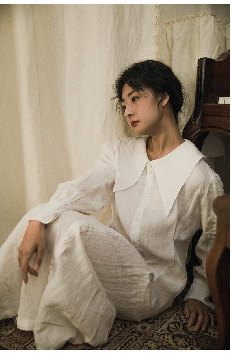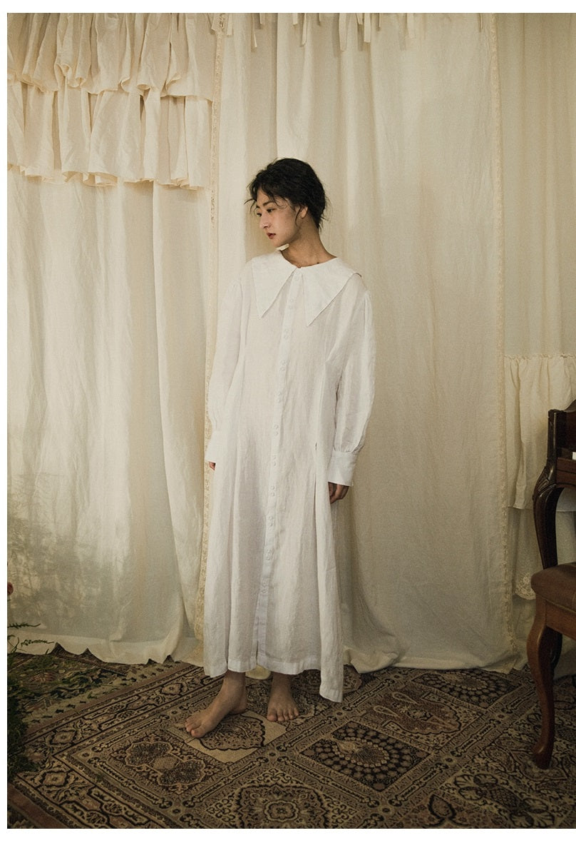 Presentamos el vestido camisero largo Trisha de lino y algodón con cuello ancho. Confeccionado en lino y algodón de una suavidad excepcional, este vestido presenta un cuello oversize y un largo maxi fluido para un look sofisticado y sin esfuerzo. Perfecto para cualquier ocasión, este vestido realzará tu armario con su diseño elegante y exclusivo.