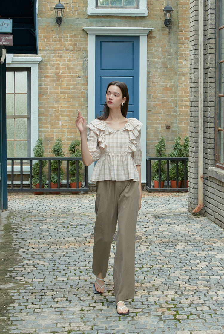 Crafted from breathable linen, these high-rise wide-leg pants from Laura Ren offer refined comfort and effortless elegance. The soft pleated front adds subtle structure, while the elastic waistband at the back ensures a comfortable and flexible fit. Designed with a minimalist aesthetic, these lightweight linen trousers are perfect for warmer days, featuring side pockets for added practicality and a draped silhouette that flatters every figure. Whether styled with a tucked-in blouse or a fitted tank, these pants transition easily from casual daywear to elevated ensembles.