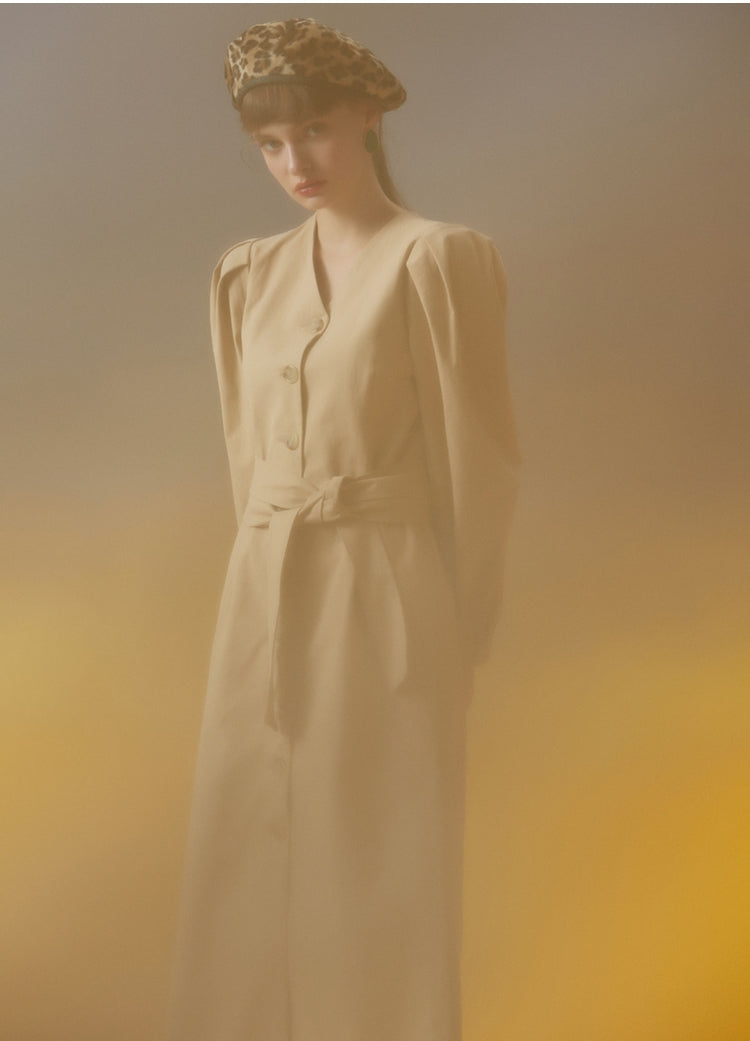 This refined linen midi dress from Laura Ren brings together structure, softness, and effortless charm. Crafted from premium breathable linen, it features a flattering V-neckline, elegant button-down front, and puff sleeves for a touch of volume. The self-tie waist belt cinches gently to enhance the silhouette, making it a versatile choice for both casual and sophisticated occasions. Its midi length and tailored design offer timeless appeal, while the natural texture of linen ensures all-day comfort. A perfect blend of minimalist tailoring and feminine detail, ideal for modern wardrobes.