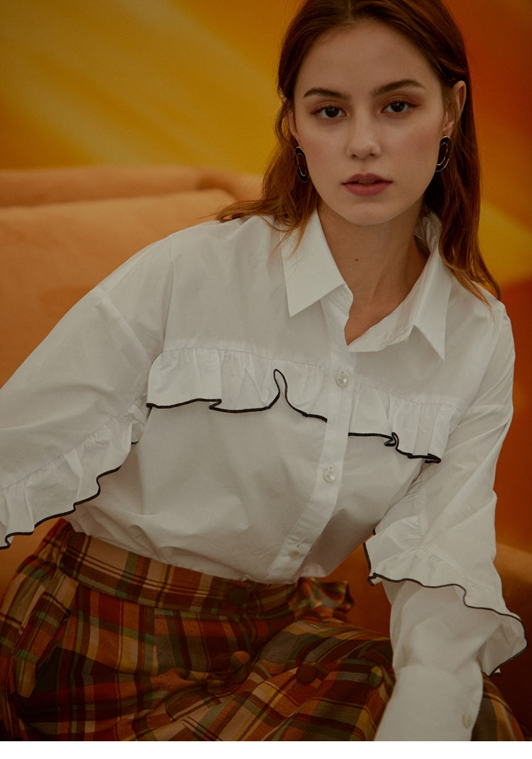 Elevate your wardrobe with this tailored cotton poplin blouse from Laura Ren, designed to blend timeless style with modern detail. Made from high-quality cotton poplin fabric, this shirt features a crisp button-up front, structured collar, and uniquely ruffled sleeves with contrasting piping for a touch of elegance. The flattering fit pairs perfectly with skirts or trousers, making it ideal for both professional and casual settings. Whether you're dressing for the office or an elevated everyday look, this versatile cotton poplin top offers breathable comfort and chic style that lasts all day.