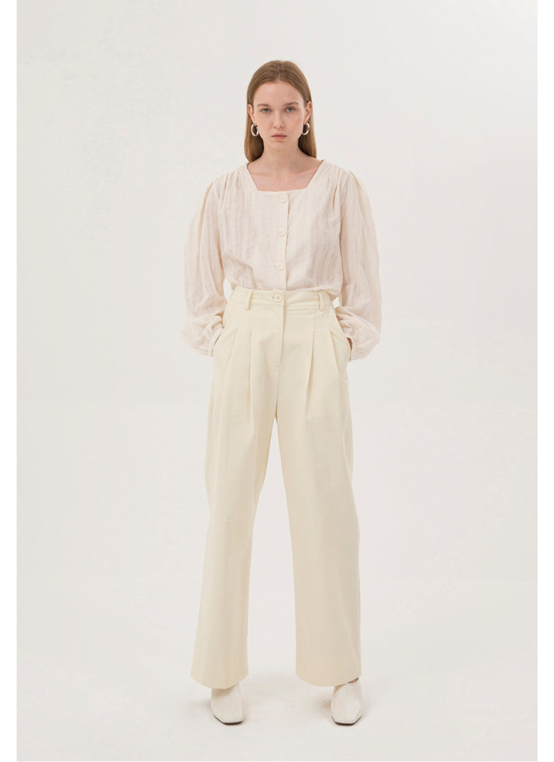 Refined and effortlessly chic, these high-waisted linen trousers by Laura Ren are the perfect fusion of structure and flow. Crafted from premium, breathable linen fabric, they feature soft pleats and a wide-leg silhouette designed to flatter every figure. The tailored waistband and clean front closure enhance the polished aesthetic, while the full-length cut offers timeless versatility. Ideal for both professional settings and elevated casual looks, Laura Ren's signature attention to minimalist elegance makes these trousers a wardrobe essential for the modern woman.