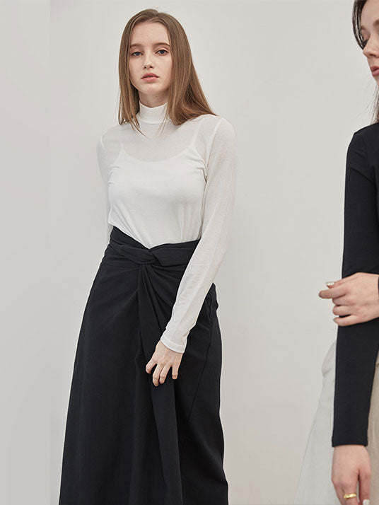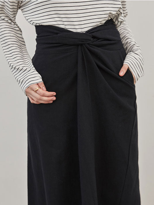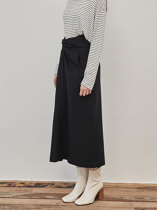 This high-waisted linen midi skirt from Laura Ren offers a refined twist on minimalist dressing. Crafted from 100% breathable linen, it features a sculptural front knot detail that cinches the waist and adds a soft drape to the silhouette. Designed with a clean, mid-length hem and a flattering A-line shape, this skirt balances structure with ease. Whether styled with knits, tucked-in tees, or boots, it delivers timeless elegance for everyday wear. The understated design and premium fabric make it a versatile essential in any modern wardrobe.