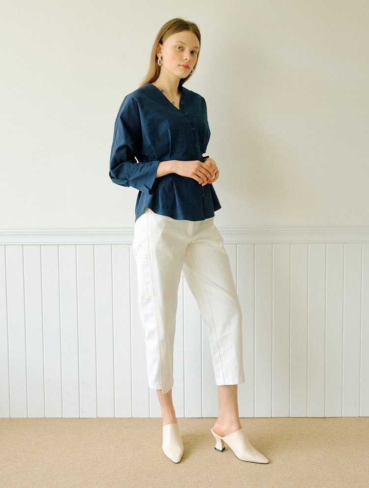 Refined and modern, this women’s linen blouse by Laura Ren is crafted from breathable natural linen for a soft, structured look. Featuring a tailored fit with a subtle peplum flare, this blouse flatters the waistline while offering all-day comfort. The V-neckline and fabric-covered button front add a touch of elegance, and the 3/4 length sleeves bring timeless versatility. Perfect for office wear, weekend outings, or elevated casual looks, this linen blouse effortlessly blends minimalist design with feminine detail. Discover elevated essentials with Laura Ren’s signature craftsmanship and style.