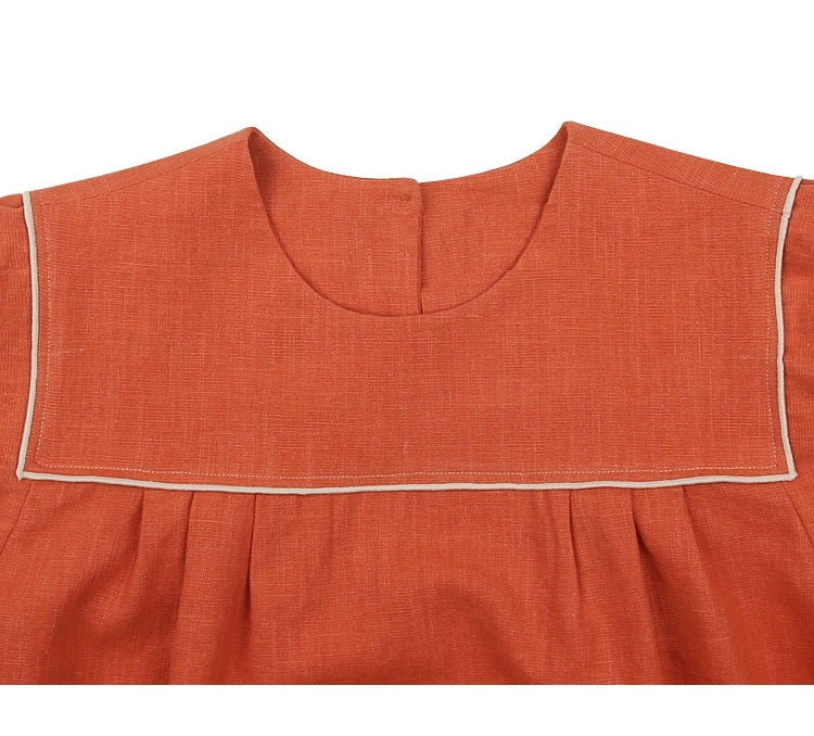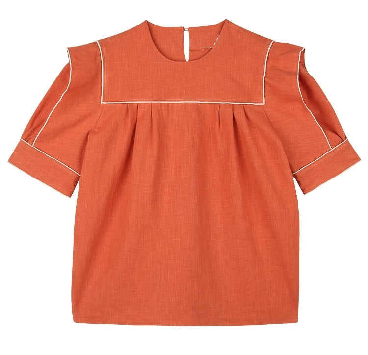 Bring effortless style and breathable comfort to your wardrobe with this refined linen blouse from Laura Ren. Crafted from high-quality linen, this short-sleeve top features a distinctive square yoke neckline and delicate contrast piping that adds tailored sophistication. The relaxed silhouette offers an easy fit perfect for everyday wear, while the structured pleats add subtle volume and shape. Designed to pair beautifully with high-waisted pants, skirts, or denim, this blouse balances elegance and practicality. A timeless piece for warm-weather dressing or layering across seasons.