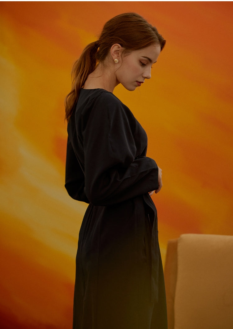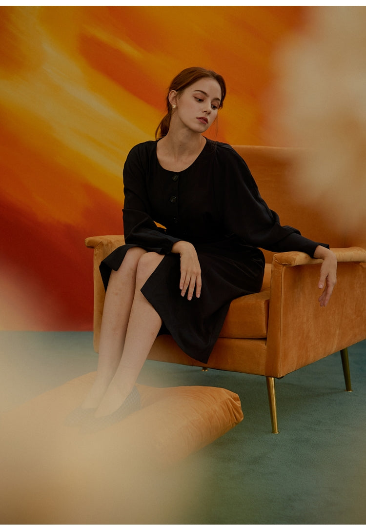 Elevate your everyday elegance with this classic linen midi dress from Laura Ren. Designed with a round neckline, full button-down front, and a detachable waist tie, this dress offers timeless tailoring and versatile styling. Made from breathable, natural linen, it ensures both comfort and structure with every wear. The long sleeves and minimalist silhouette give it a refined, seasonless appeal—perfect for workdays, casual outings, or dressed-up evenings. A wardrobe staple that blends polished design with relaxed sophistication.