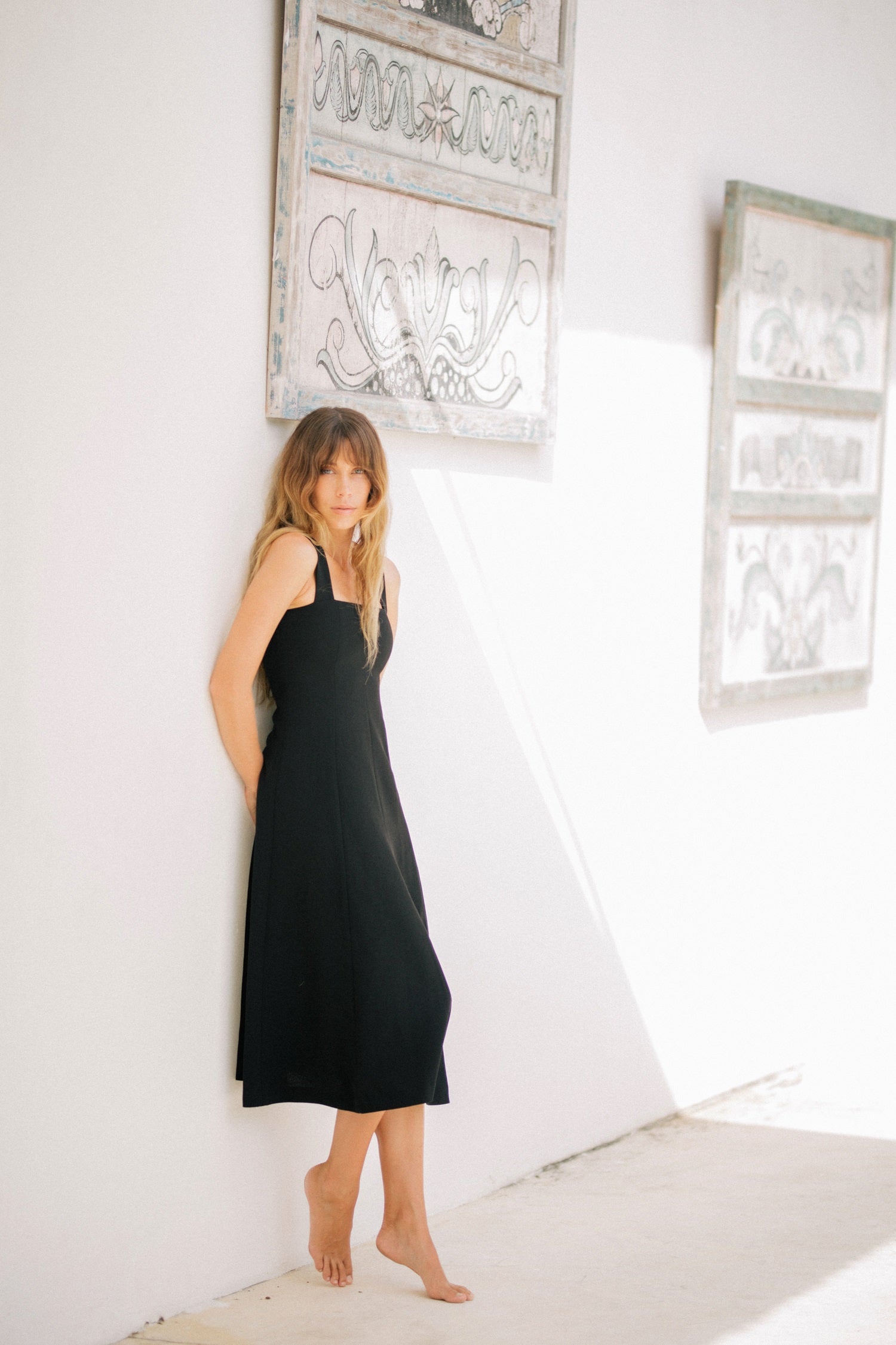 Laura Ren presents a refined women's linen dress designed to elevate everyday elegance. Crafted from high-quality, breathable linen, this piece features a tailored fit that flatters the silhouette while offering comfort and ease. The draped open back adds a hint of allure, perfectly balanced by the clean lines and natural texture of the fabric. Ideal for warm-weather events or effortless resort styling, this midi-length dress captures understated sophistication. Pair it with strappy sandals or heels for a timeless, graceful look.