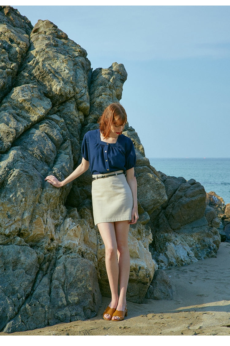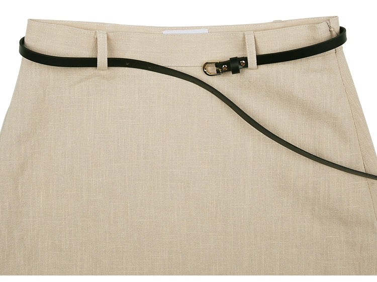 Laura Ren presents this refined A-line linen skirt designed for the modern woman. Crafted from breathable, high-quality linen, it offers a clean, tailored silhouette enhanced by a minimalist belt detail for a flattering fit. This skirt is ideal for versatile styling—whether paired with a crisp blouse or relaxed tee. Perfect for summer days or smart-casual events, it blends elegance and comfort seamlessly.