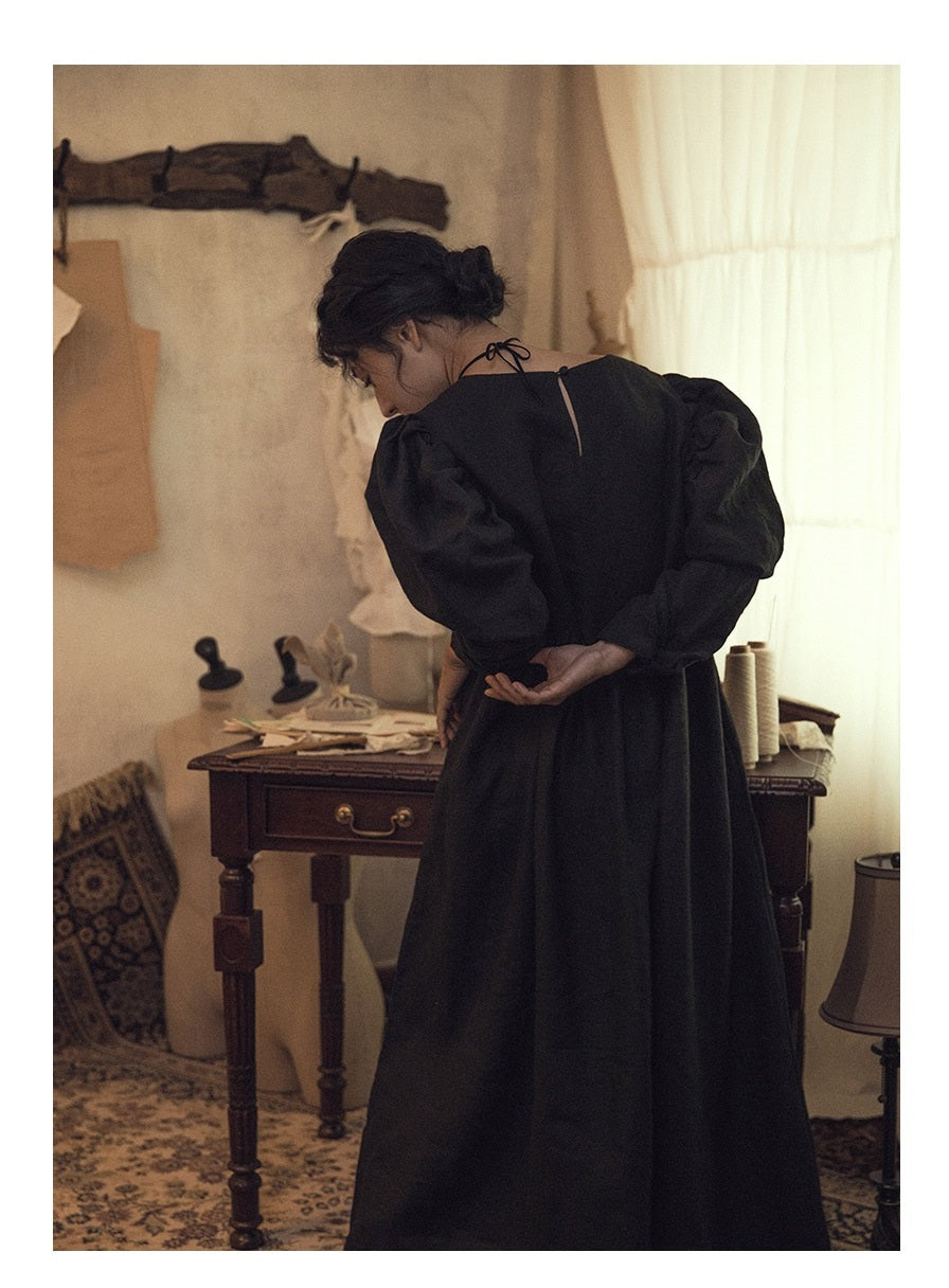 Elevate your wardrobe with the Alexandra Linen Cotton Dress. Crafted from a luxurious blend of linen and cotton, this dress offers sophistication and comfort. The pleated design and flowing silhouette create a timeless and elegant look, perfect for any occasion. Experience true luxury with this one-of-a-kind dress.