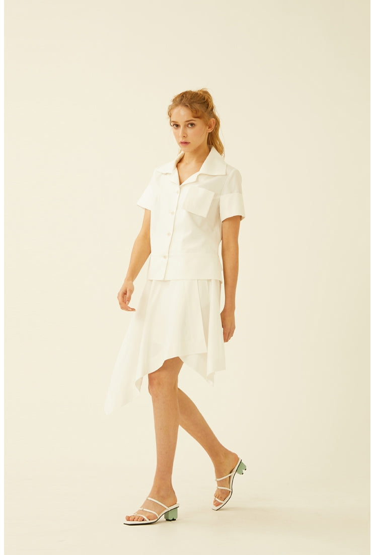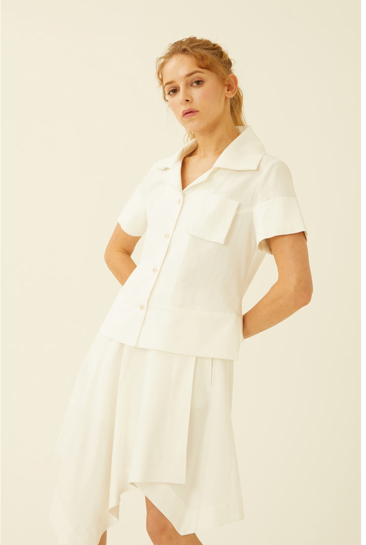 Elevate your summer styling with this asymmetric linen skirt from Laura Ren. Designed with a high-waisted fit and softly structured waistband, this skirt features a fluid handkerchief hemline that moves gracefully with every step. Crafted from breathable linen, the lightweight texture and unlined construction provide airy comfort and effortless elegance. Ideal for resort wear or city chic looks, this skirt can be paired with tailored tops or soft blouses to reflect Laura Ren’s signature blend of clean lines and contemporary femininity.