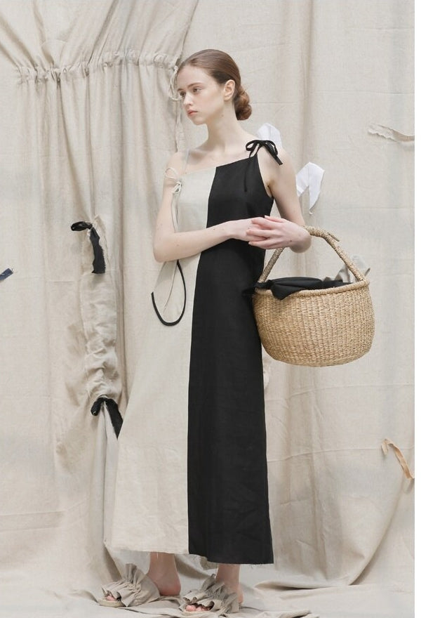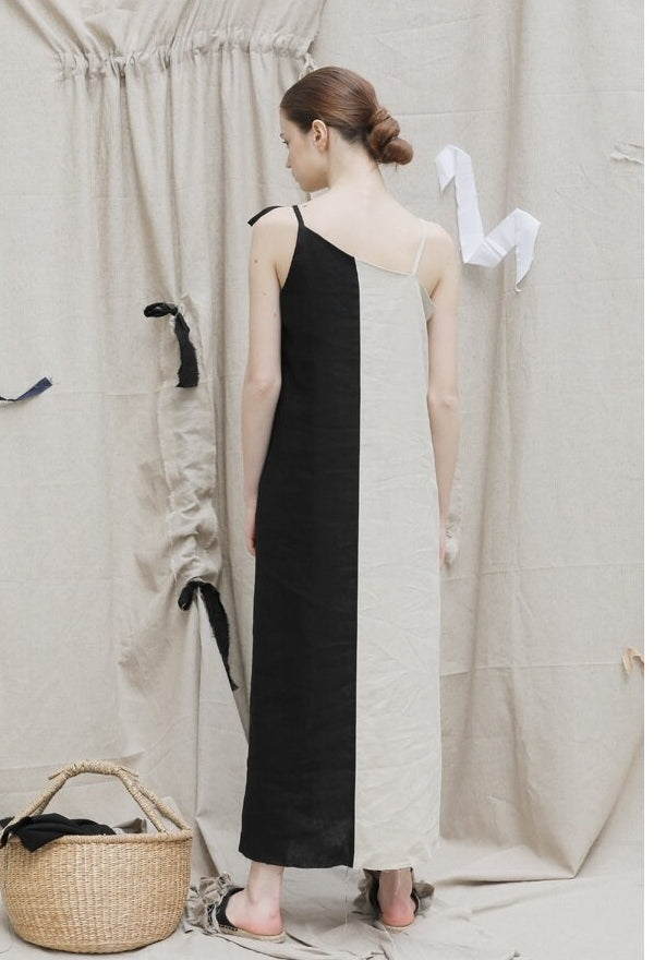 Elevate your wardrobe with this striking asymmetrical linen maxi dress from Laura Ren, designed to exude modern elegance and relaxed sophistication. Made from breathable, high-quality linen, this dress features a unique dual-tone front panel in contrasting hues, adjustable spaghetti straps tied at the shoulders, and a streamlined, ankle-length silhouette. A subtle curved patch pocket and the artful construction add minimalist charm to this standout piece. Perfect for refined summer outings, resort styling, or elevated everyday wear, this dress seamlessly balances comfort, design, and contemporary flair. Discover a new level of effortless chic with Laura Ren.