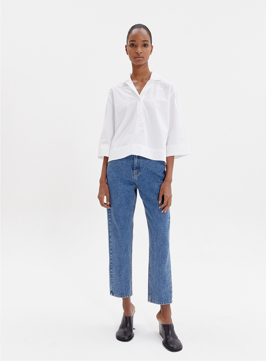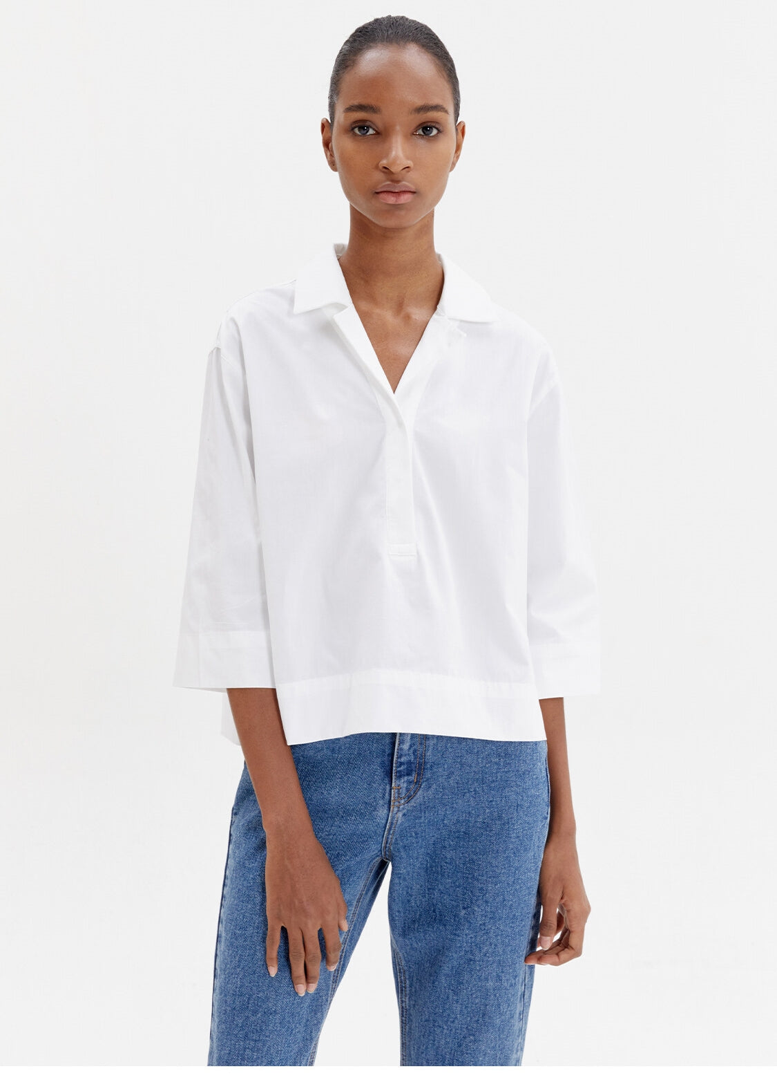 This relaxed-fit linen blouse from Laura Ren blends simplicity and elegance with a modern silhouette. Crafted from breathable linen, the top features a soft V-neckline with an open collar, dropped shoulders, and wide three-quarter sleeves. The boxy cut adds a contemporary edge, while the back yoke pleat enhances movement and structure. Ideal for warm-weather styling, this blouse pairs effortlessly with jeans, tailored trousers, or skirts. Designed for the modern woman who values comfort and style, this Laura Ren piece is a versatile essential for everyday sophistication.
