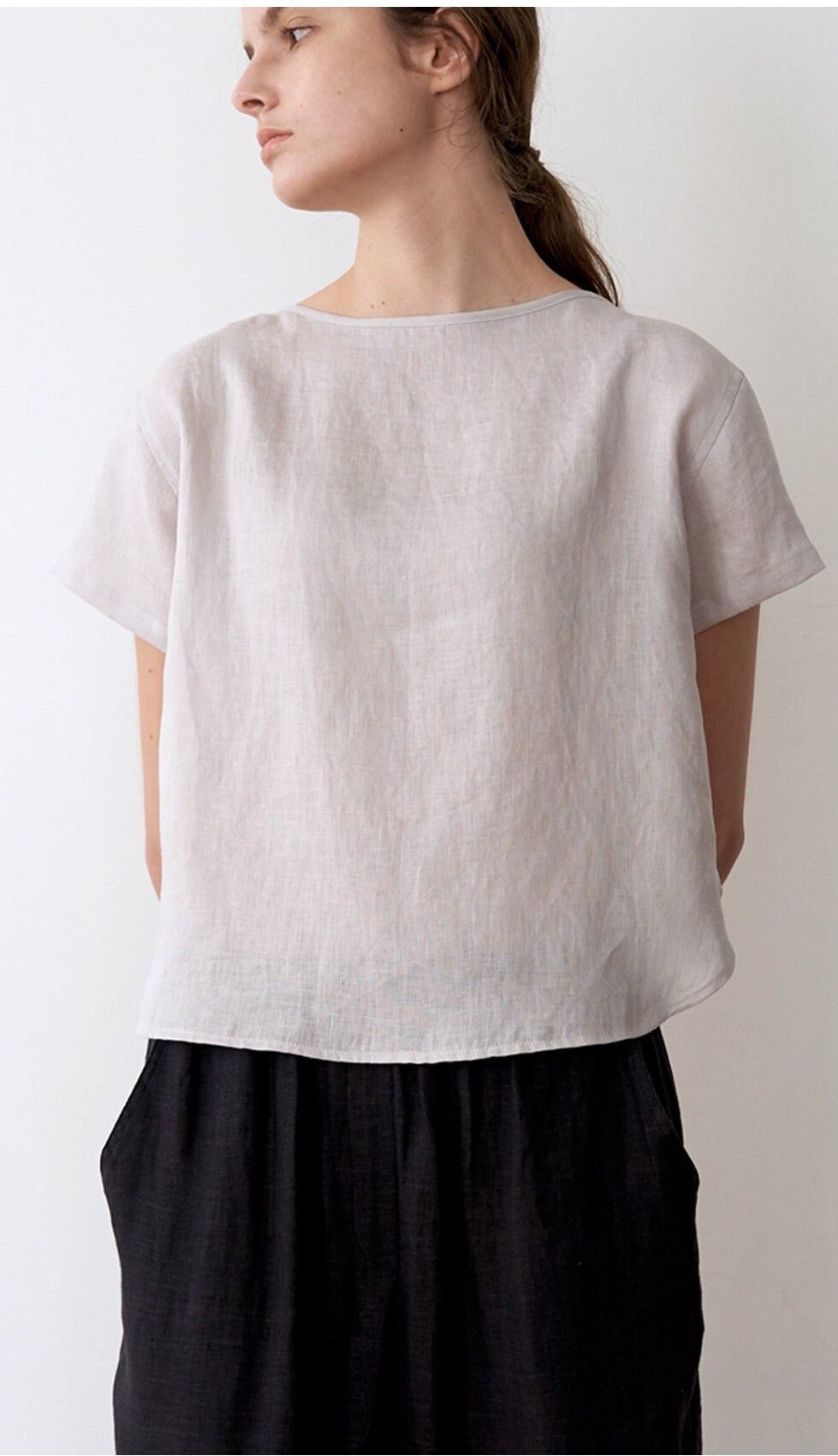 This lightweight linen blouse from Laura Ren brings a clean, minimal aesthetic to everyday dressing. Featuring a relaxed, boxy fit and a soft boat neckline, it’s designed for warm-weather comfort with its breathable linen weave and short sleeves. The cropped length makes it ideal for pairing with high-waisted trousers or skirts, creating a balanced silhouette. Gentle gathering at the back yoke adds subtle volume and ease, while the understated design lends itself to endless styling possibilities. A refined staple in the Laura Ren collection, perfect for laid-back sophistication.