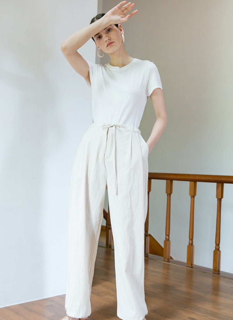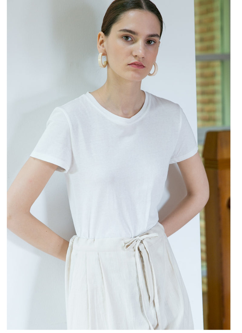 Crafted from premium linen, this timeless T-shirt by Laura Ren brings effortless style and breathable comfort to your everyday wardrobe. Featuring a classic crew neckline and a tailored silhouette, it seamlessly transitions from casual days to refined layering. The natural linen fabric provides exceptional softness and ventilation, making it ideal for warm-weather dressing. Whether paired with structured trousers or flowing skirts, this versatile piece from Laura Ren blends minimalist aesthetics with high-end comfort, making it a must-have staple for elevated casual wear.