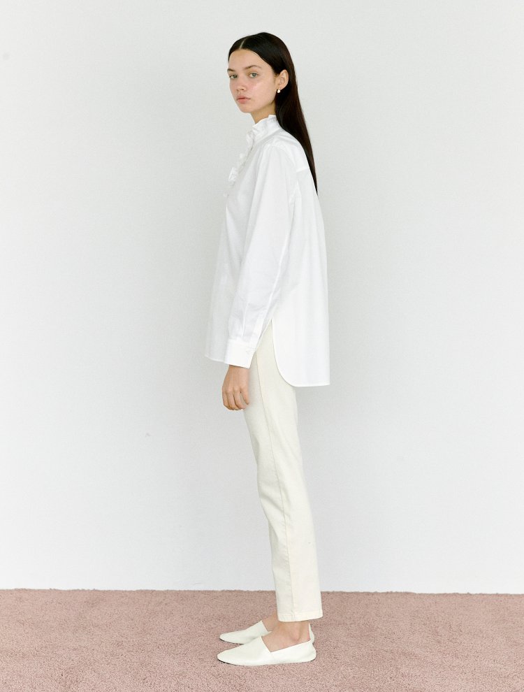 Elevate your everyday elegance with this refined linen blouse by Laura Ren. Designed with a romantic high ruffled neckline and delicate front button placket, this long-sleeve blouse brings a touch of sophistication to any look. The breathable linen fabric offers all-day comfort while ensuring a crisp silhouette. Perfect for layering or wearing solo, the structured yet soft texture complements both casual jeans and tailored trousers. Whether styled for work or a relaxed brunch, Laura Ren’s linen blouse delivers timeless charm with modern grace. Ideal for those who value premium natural fabrics and clean, elevated design.
