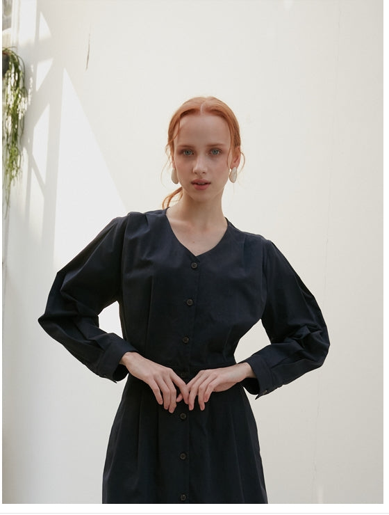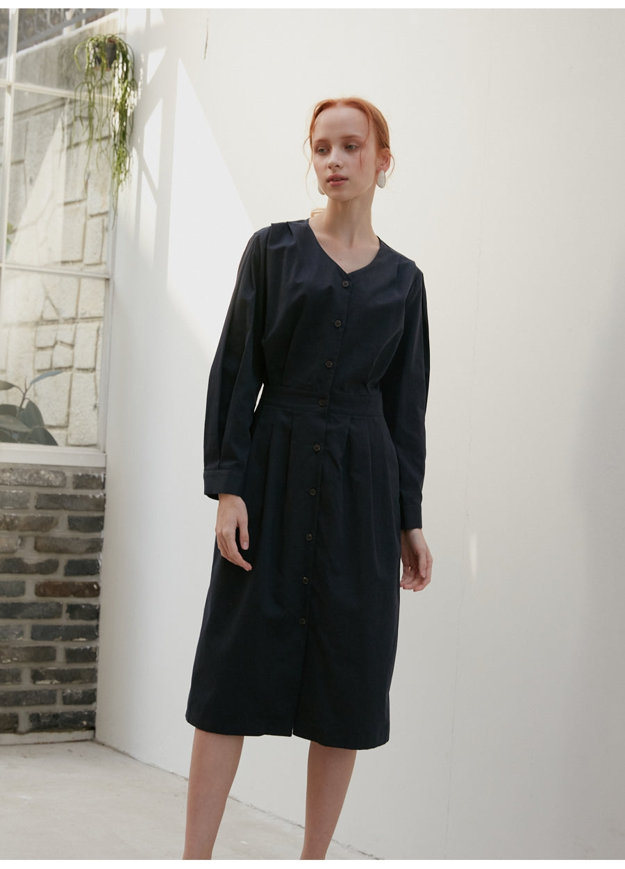 Elevate your everyday elegance with this refined linen midi dress from Laura Ren, crafted for comfort and tailored sophistication. Made from breathable linen, this dress features a structured button-down front, flattering V-neckline, and long sleeves for a balanced, polished look. The pleated skirt and defined waistline add graceful movement and shape, creating a timeless silhouette suited for both casual and formal occasions. Ideal for transitional seasons, this versatile piece pairs beautifully with flats, heels, or even layered outerwear for effortless styling.