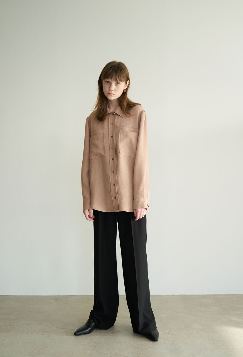 This relaxed button-up linen shirt by Laura Ren merges effortless tailoring with elevated everyday design. Made from breathable, soft linen, it features a classic point collar, long sleeves with buttoned cuffs, and two oversized patch pockets for a utilitarian twist. The longer hemline and straight silhouette make it ideal for layering or wearing solo, tucked or untucked. Perfectly suited for transitioning between seasons, it pairs equally well with wide-leg trousers, jeans, or tailored skirts. A contemporary staple that balances functionality and refined comfort.