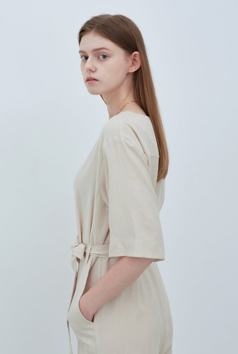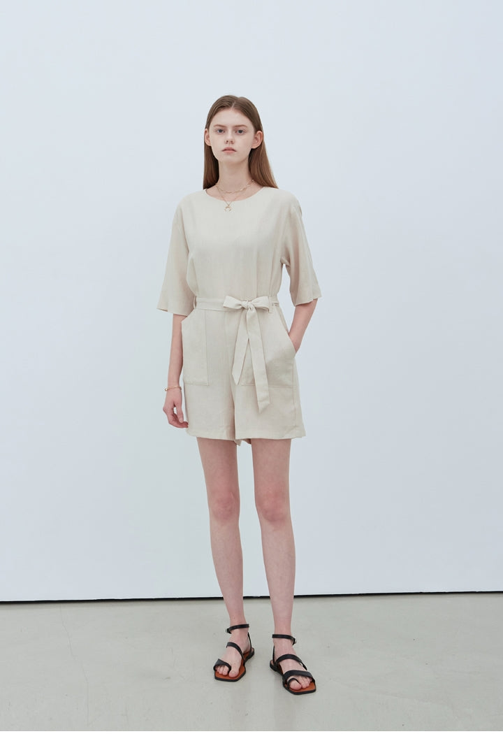 Discover elevated comfort and refined style with this beautifully tailored linen jumpsuit from Laura Ren. Crafted from breathable, premium linen fabric, this one-piece features a clean round neckline, relaxed short sleeves, and a belted waist that enhances your silhouette. Thoughtfully designed with roomy front patch pockets and a flattering short length, it’s perfect for warm-weather outings, garden parties, or city strolls. The soft, natural texture of linen ensures all-day ease while maintaining an elegant structure. Whether styled with sandals or heels, this jumpsuit offers effortless sophistication and versatile wearability for modern wardrobes.