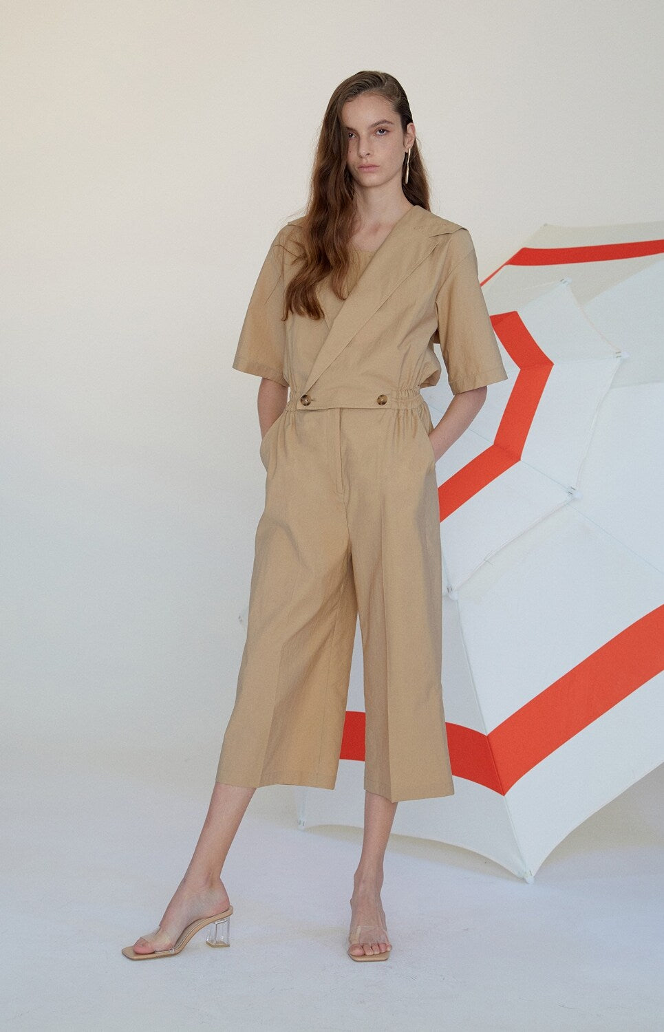 Effortlessly blending contemporary structure with breezy comfort, this tailored linen jumpsuit by Laura Ren is crafted for the modern, fashion-forward woman. Designed in premium lightweight linen, it features a flattering cinched waist with subtle elastic detail and wide-leg cropped pants that offer freedom of movement and refined flair. The unique sailor-style overlay collar adds architectural elegance, while the relaxed silhouette ensures versatile wearability—from casual outings to sophisticated gatherings. Functional side pockets and a wrap-style front complete this elevated essential. Ideal for warm weather, this linen jumpsuit combines polished design with breathable ease, making it a wardrobe staple for the discerning woman.