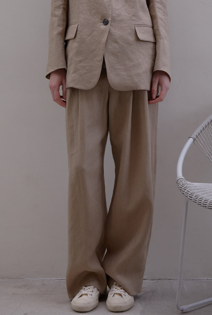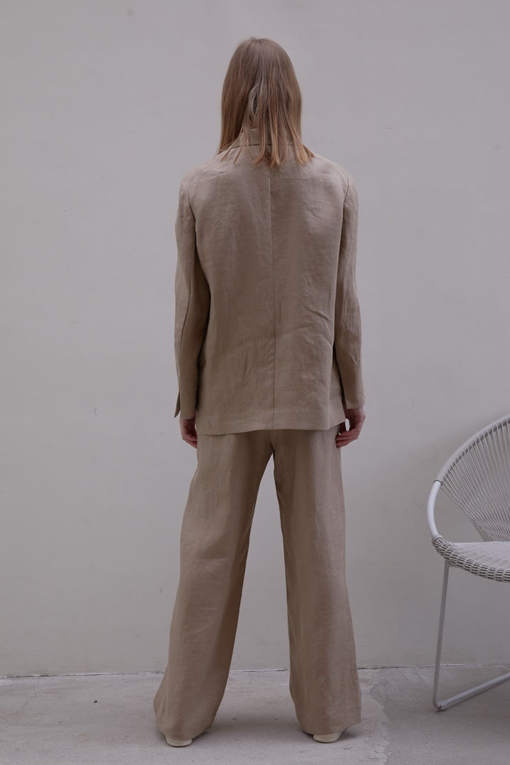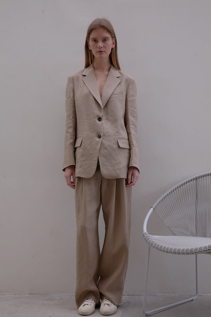 Crafted from breathable, high-quality linen, this classic blazer by Laura Ren brings structure and sophistication to warm-weather dressing. Featuring a timeless notched lapel, structured shoulders, and a tailored silhouette, the blazer fastens with two front buttons and is finished with flap pockets and a chest welt pocket for a refined touch. The natural beige tone offers endless versatility, pairing seamlessly with both matching trousers or casual separates. Whether styled for workwear, travel, or everyday polish, this Laura Ren linen blazer is a seasonless staple that balances elegance with ease.