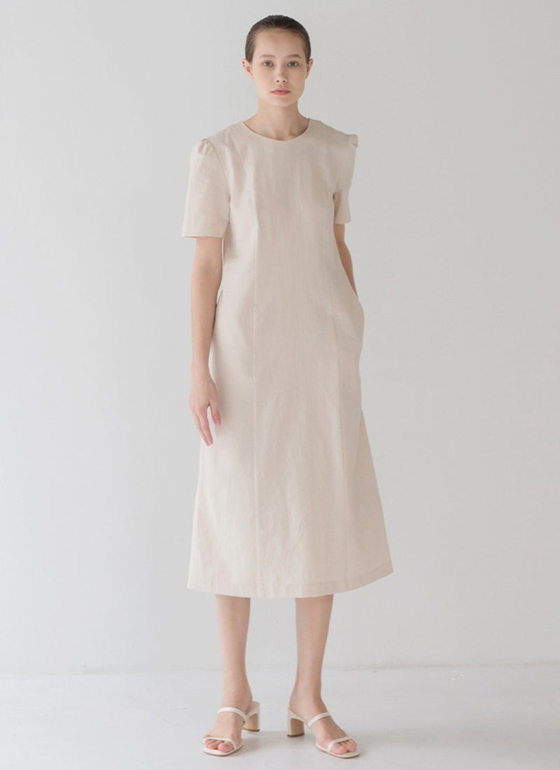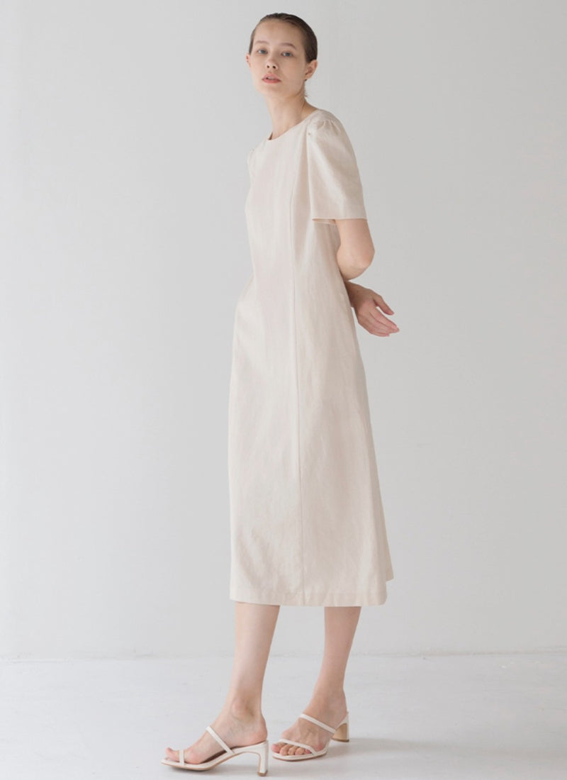 This classic linen midi dress from Laura Ren is the epitome of understated sophistication. Crafted from breathable, natural linen, it features short puff sleeves, a clean round neckline, and a gently flared A-line silhouette that flatters the figure with ease. A concealed back zipper ensures a seamless fit, while the minimalist design makes it a versatile staple for both casual and semi-formal settings. Whether paired with heels or sandals, this dress exudes quiet luxury and timeless appeal. Laura Ren’s focus on premium materials and tailored lines makes this an essential piece for the refined modern wardrobe.