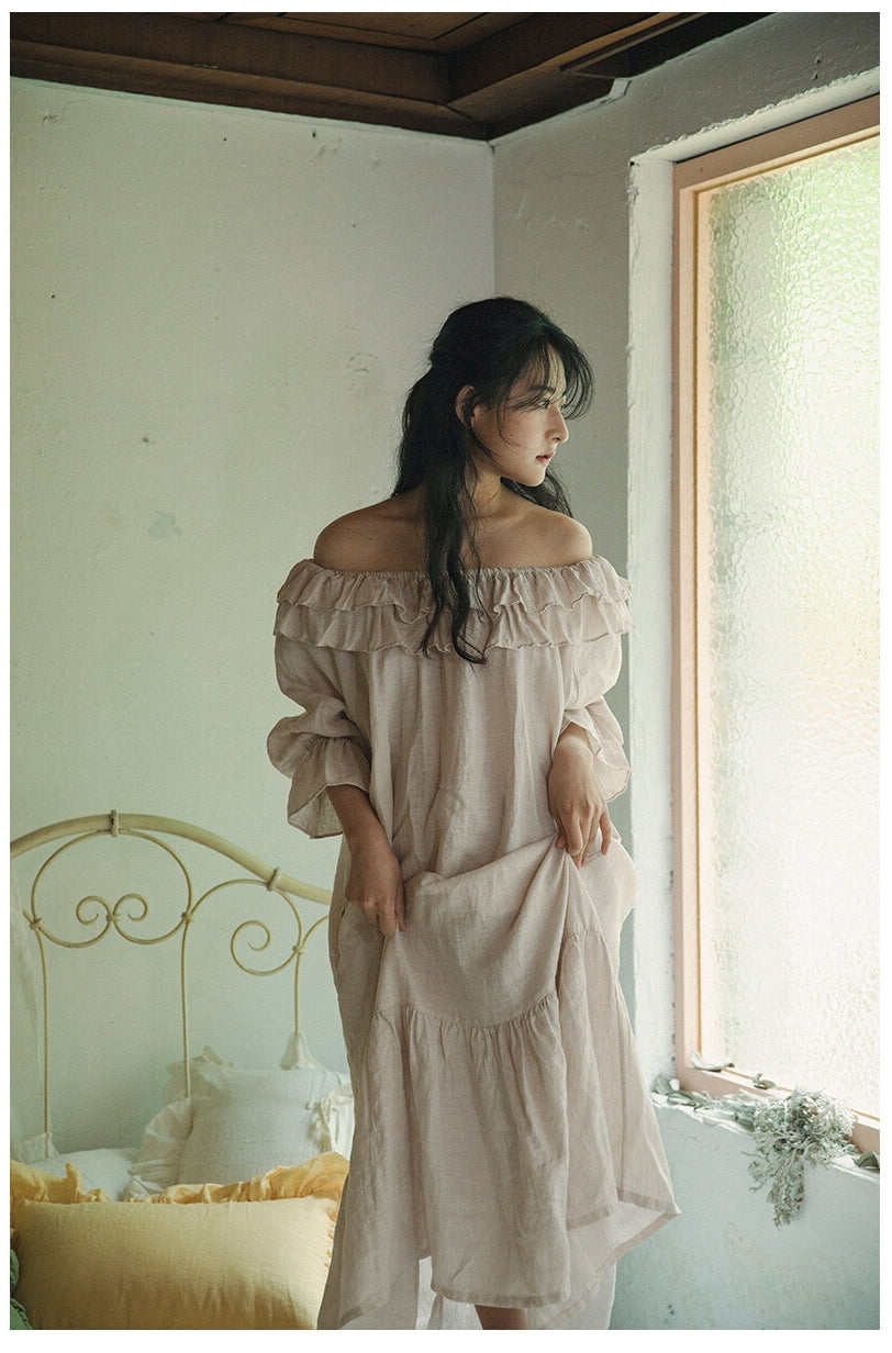 Introducing the Corinne Linen Cotton Off Shoulder Ruffle Maxi Dress, a luxurious addition to your wardrobe. Made with a blend of linen and cotton, this dress exudes elegance and sophistication. The off-shoulder design and ruffle detailing add a touch of femininity, perfect for any special occasion. Elevate your style with this exclusive piece.