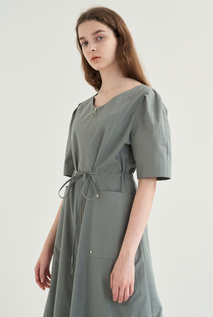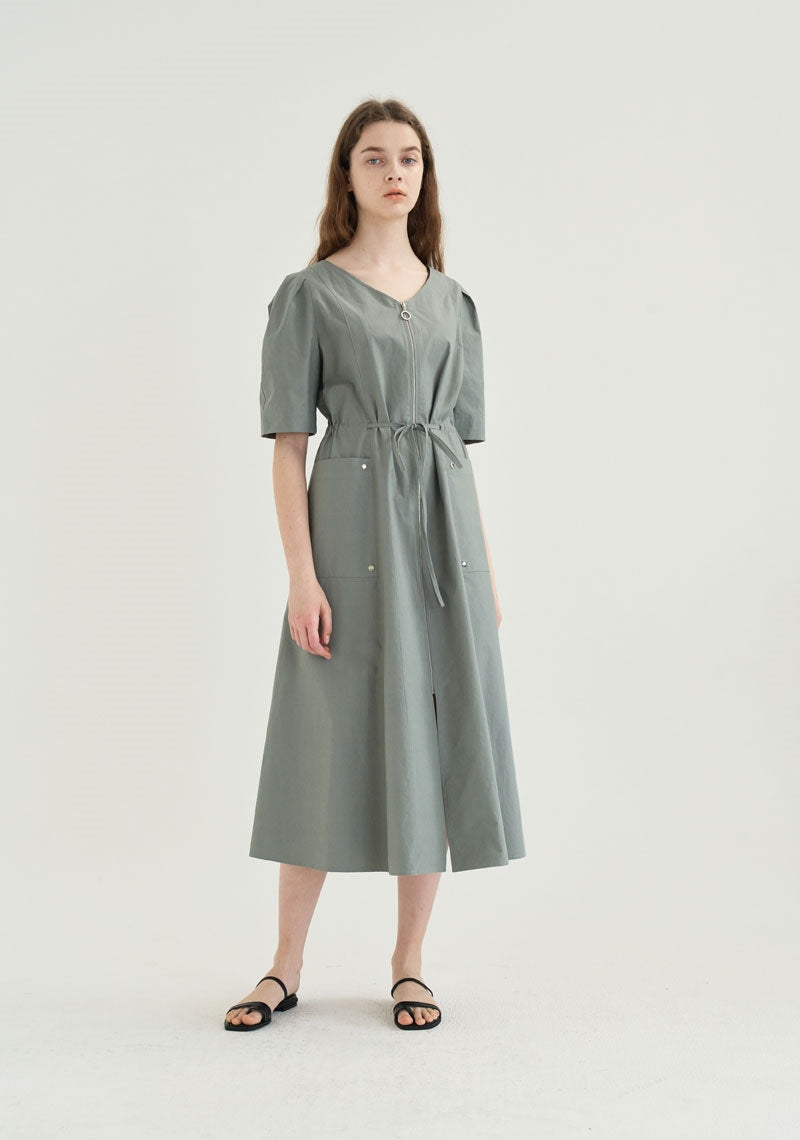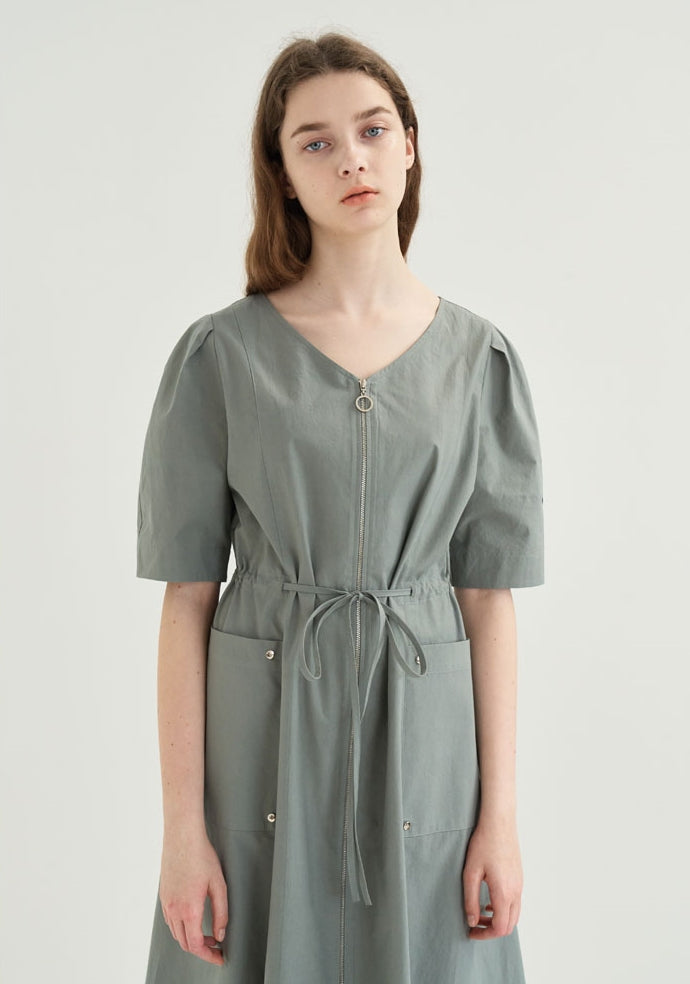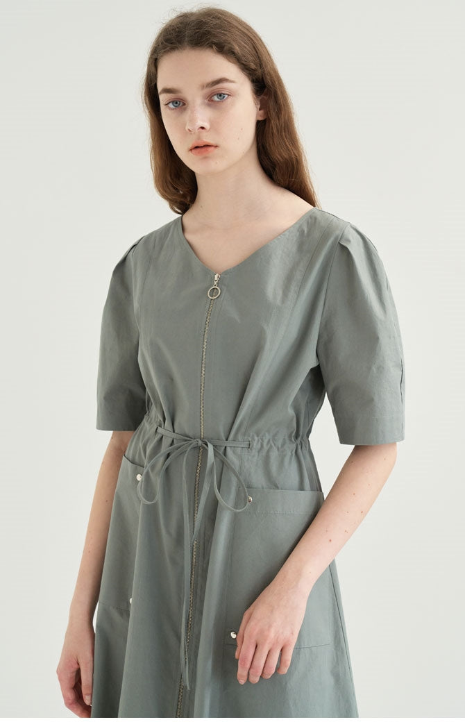 Modern utility meets feminine charm in this cotton poplin zip-front midi dress from Laura Ren. Designed with breathable, structured cotton, it features a V-neckline, short puff sleeves, and a sleek front zipper. The adjustable drawstring waist flatters the figure while adding styling versatility, and the large front patch pockets bring both function and flair. A gently flared hemline offers graceful movement, making this Laura Ren piece a standout choice for both daywear and elevated casual looks. Ideal for the contemporary woman who values practicality with refined style.