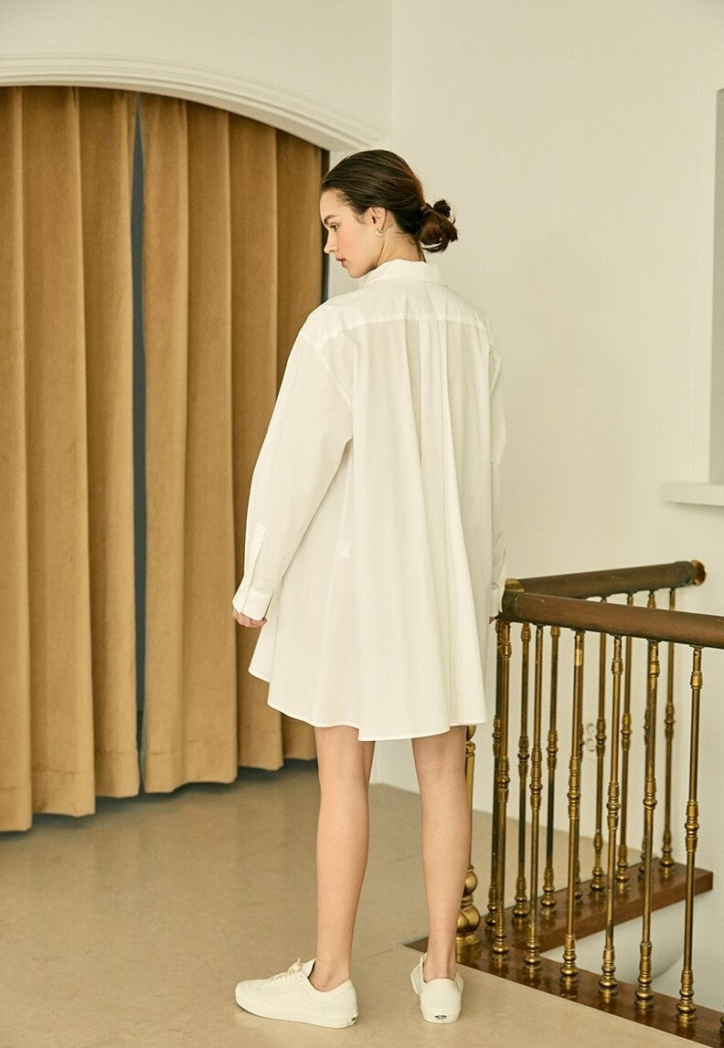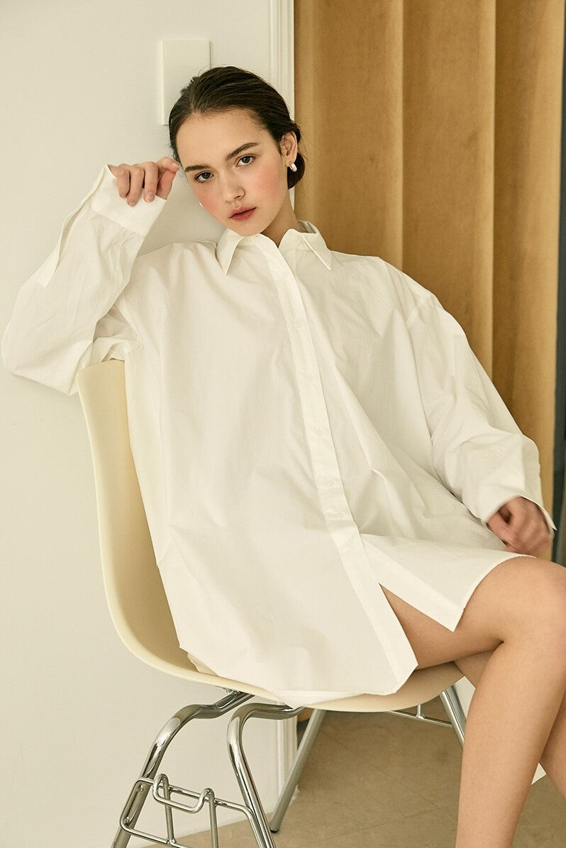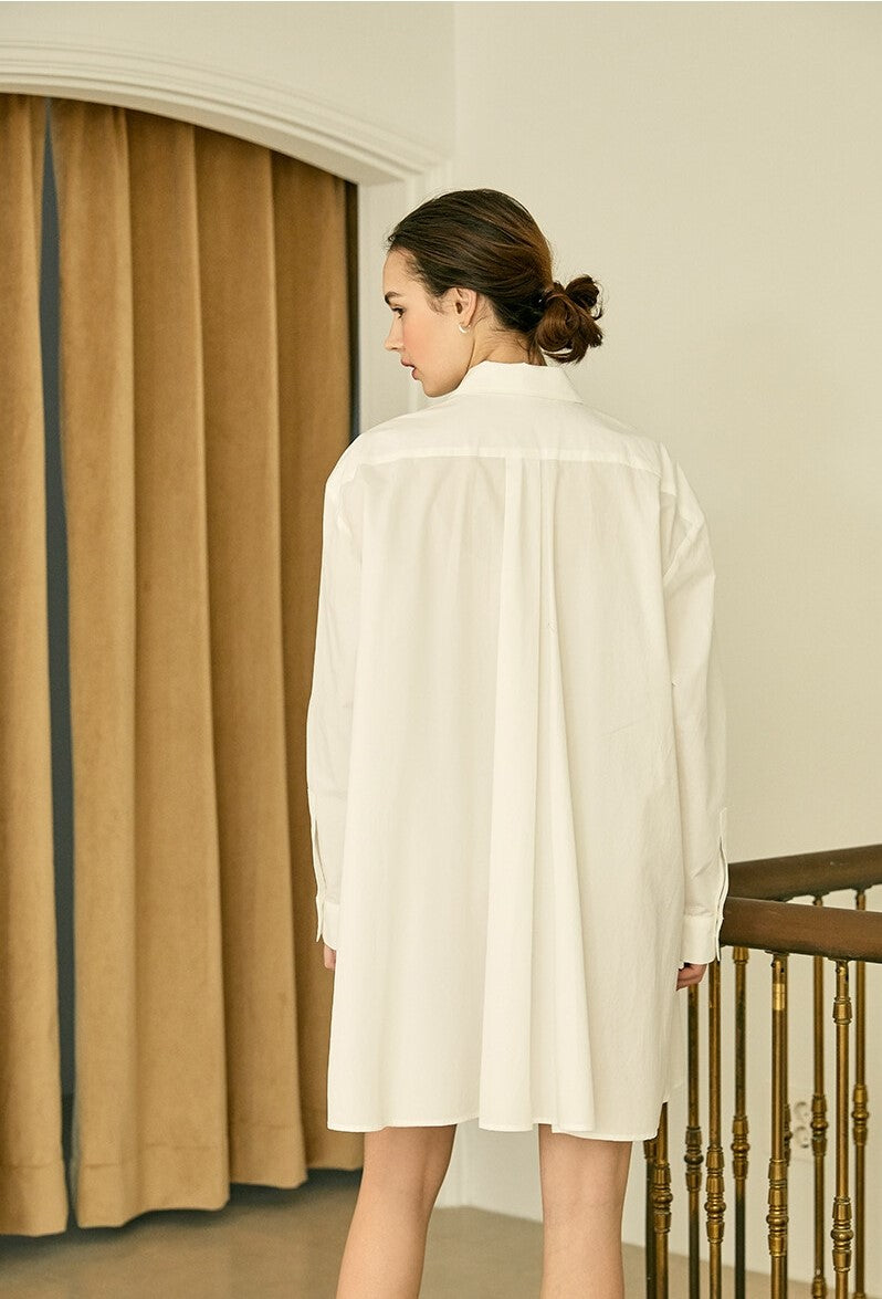 Refresh your wardrobe with this oversized cotton poplin shirt dress by Laura Ren, combining relaxed tailoring with refined structure. Crafted from premium cotton poplin fabric, this piece features a crisp pointed collar, concealed button placket, and full-length sleeves for a modern, clean silhouette. The airy, oversized fit delivers all-day comfort, while the mini length makes it easy to style for effortless, elevated looks. Whether layered over pants or worn solo, this Laura Ren design brings timeless versatility and understated elegance to everyday dressing.