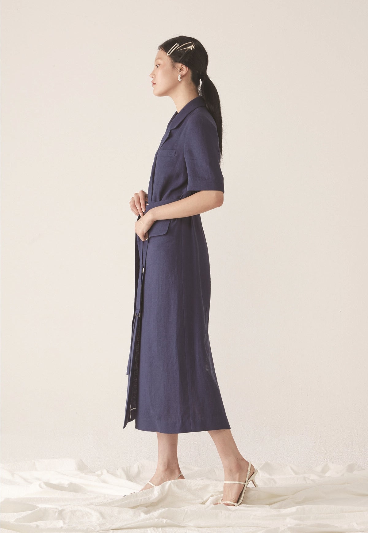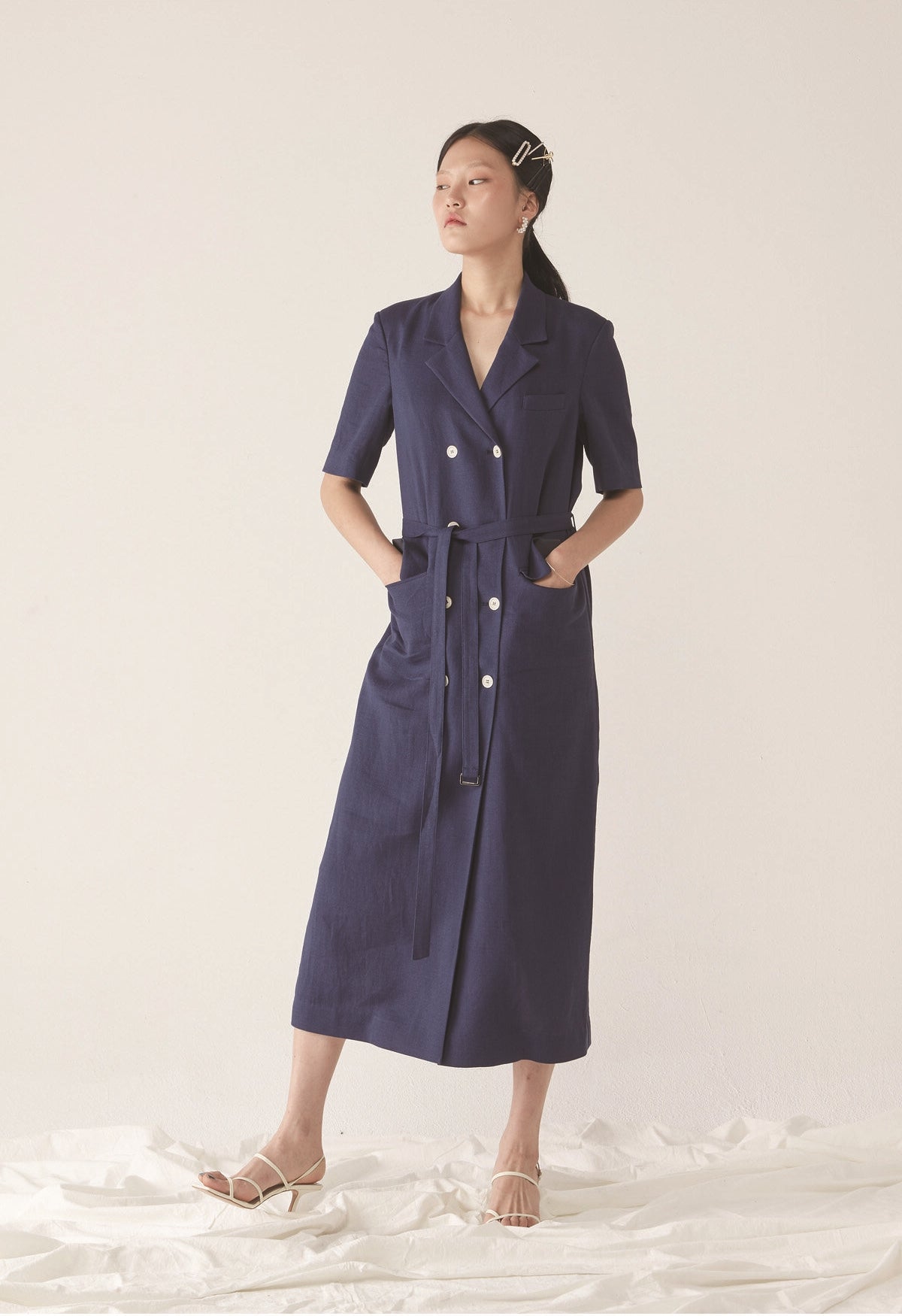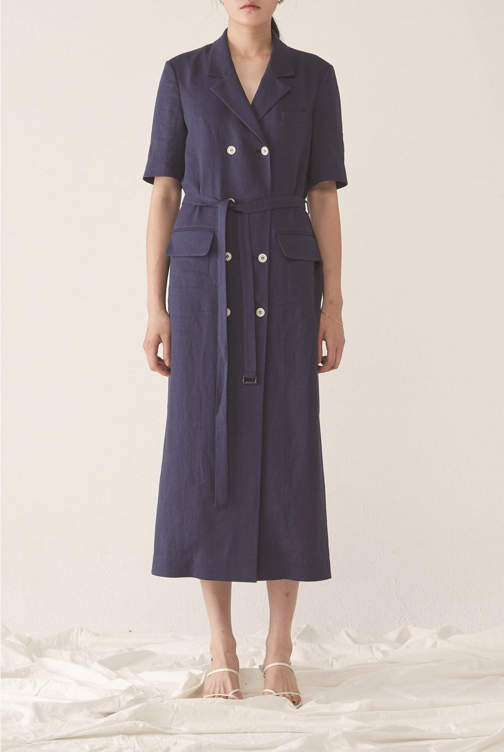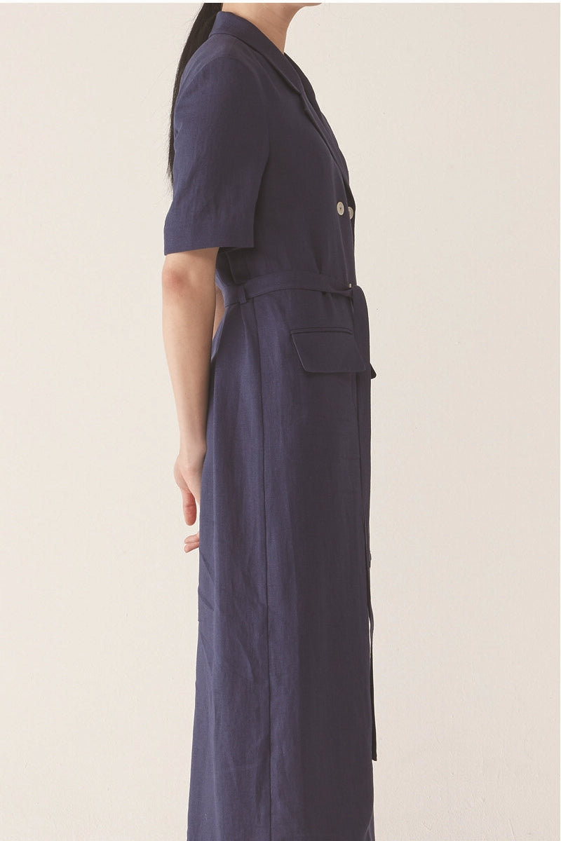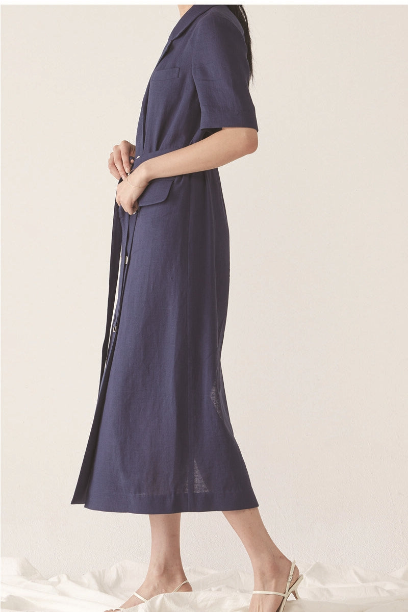 Elevate your wardrobe with this sophisticated linen midi dress from Laura Ren. Crafted from lightweight, breathable linen fabric, this dress features a sharp double-breasted front, tailored lapel collar, and adjustable waist belt for a flattering fit. Designed for modern elegance, the dress includes functional patch pockets and short sleeves, perfect for both daywear and refined evenings. The mid-length cut enhances versatile styling, allowing it to be paired with sandals or heels. Laura Ren’s timeless attention to detail and quality craftsmanship ensure that this linen piece is an essential addition to any luxury collection. Ideal for warm-weather sophistication and everyday chic.